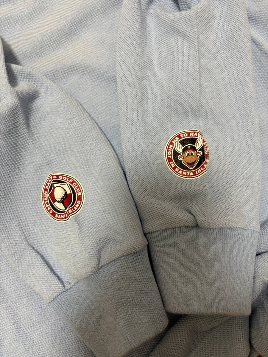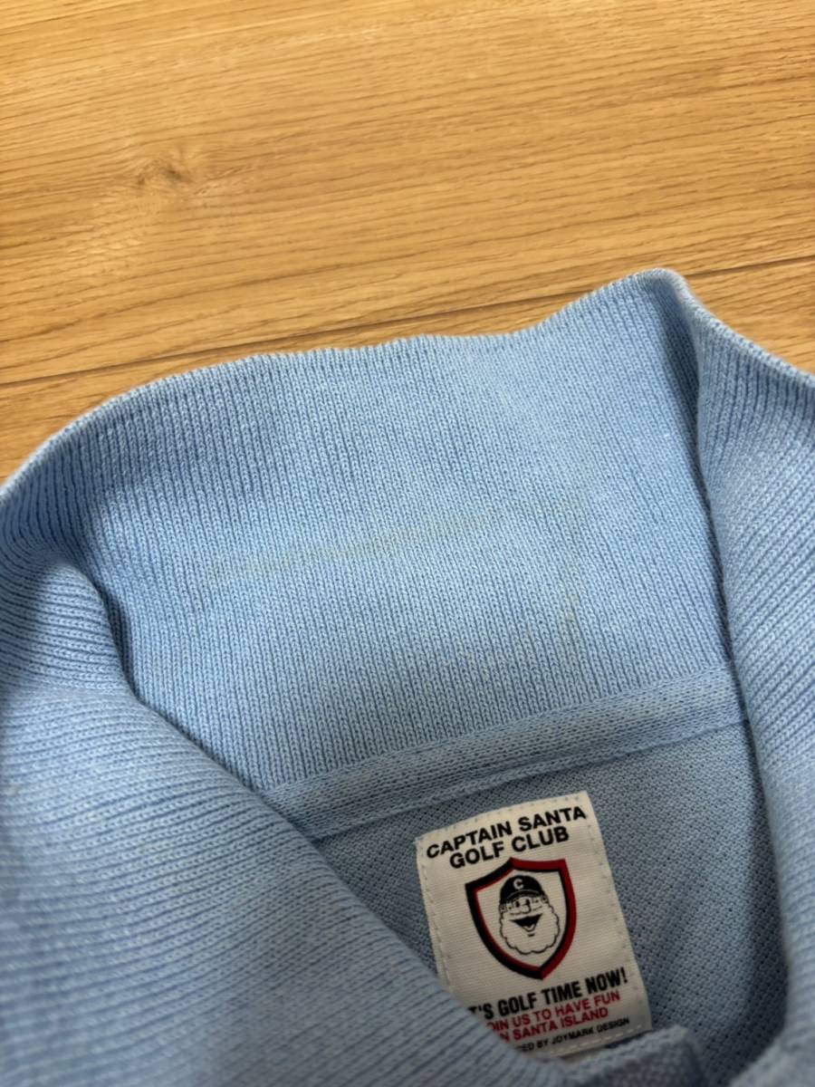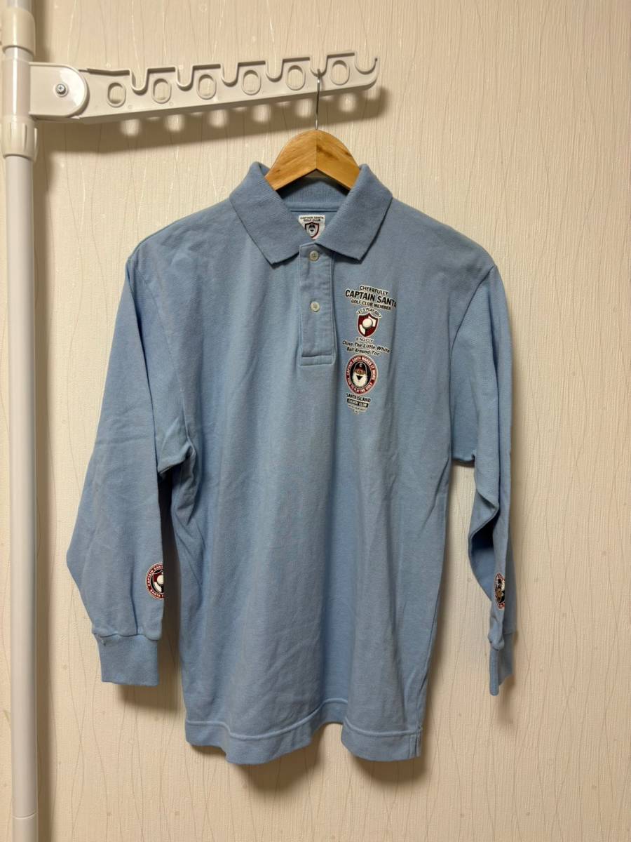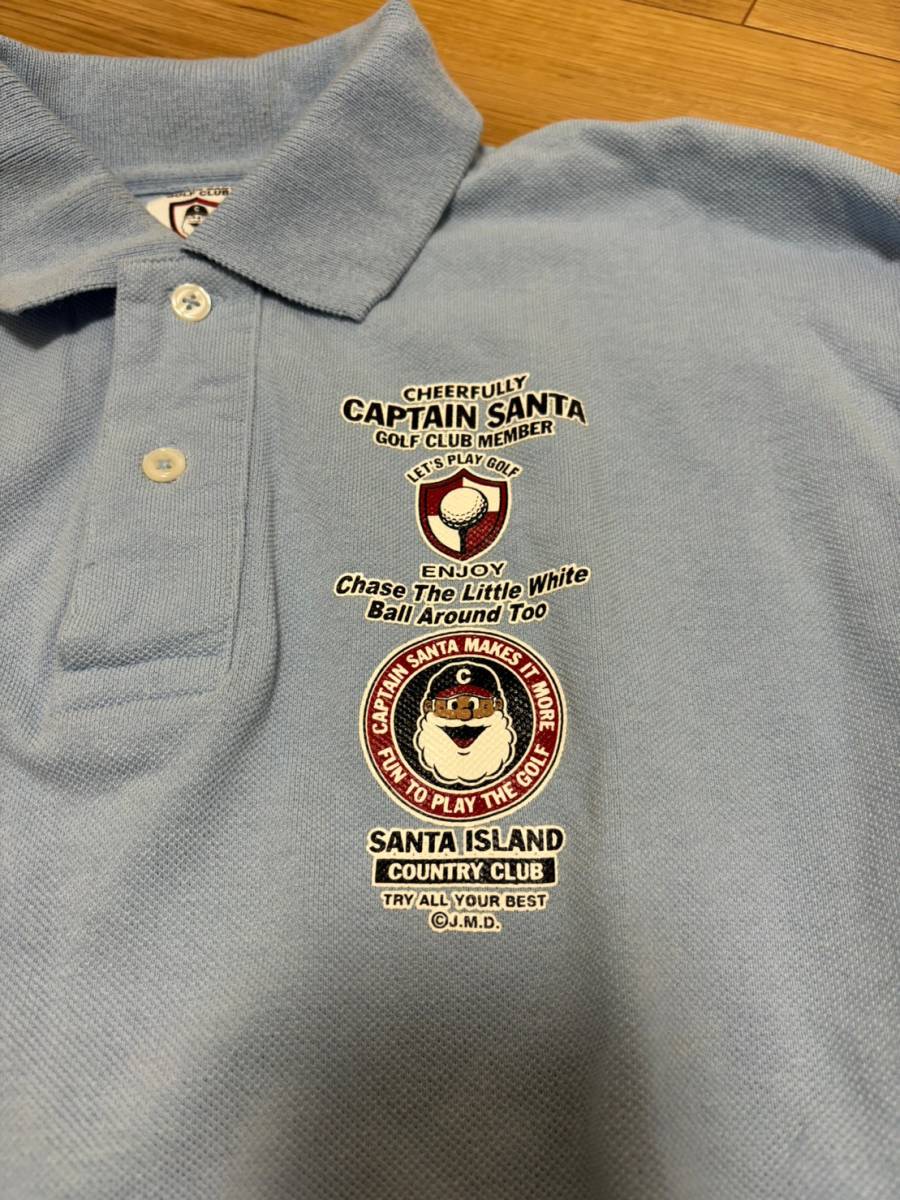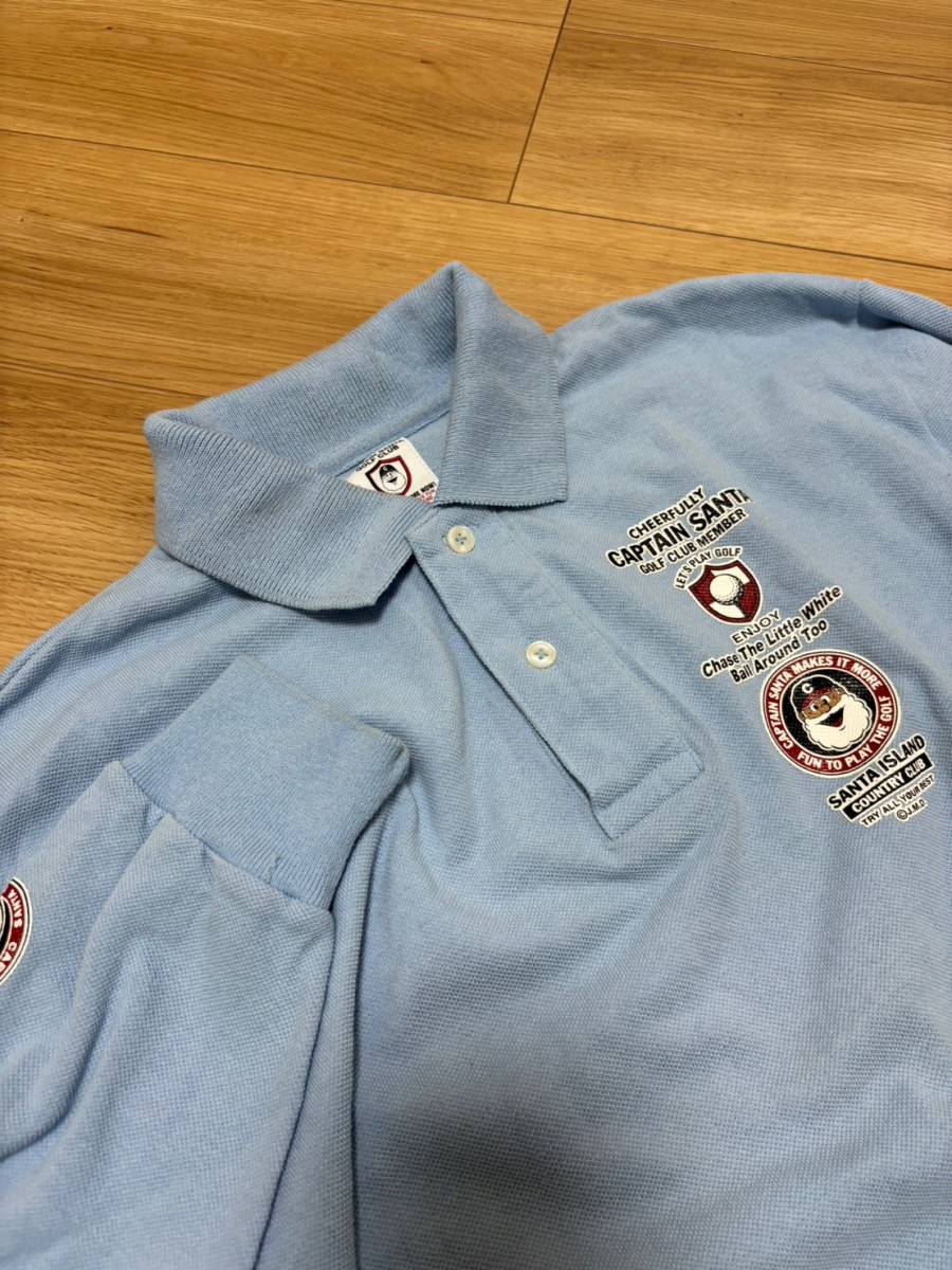 [CAPTAIN SANTA GOLF] ロゴデザイン 長袖 コットンポロシャツ S 日本製 ライトブルー キャプテンサンタ