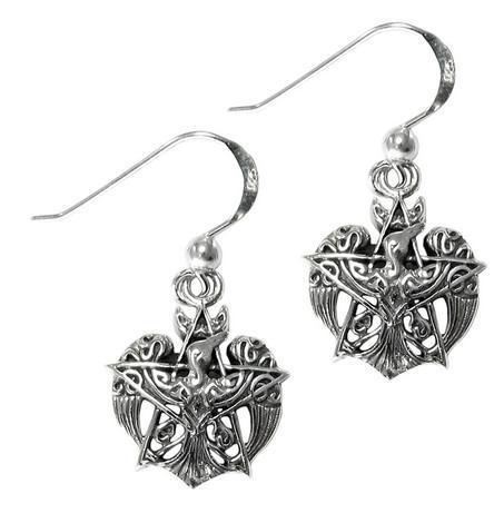 Dryad Design: Sterling Silver Crescent Raven Pentacle Earrings