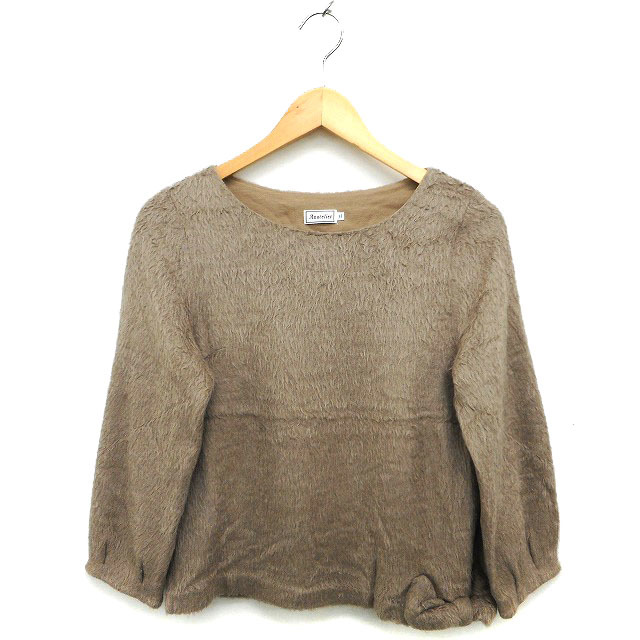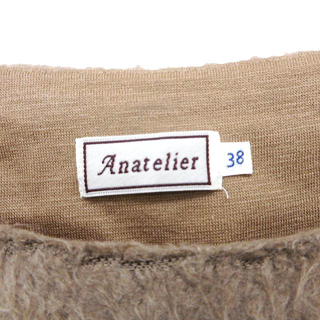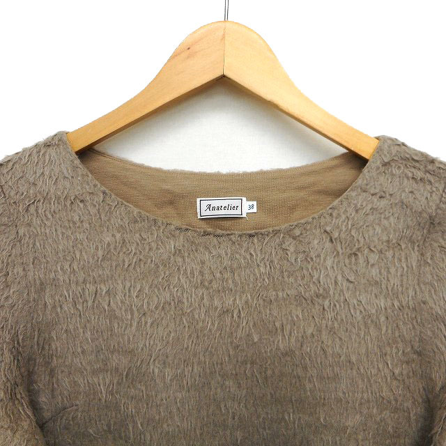 アナトリエ ANATELIER カットソー 起毛 リボン ボートネック ウール混 七分袖 38 グレージュ /NT10 レディース