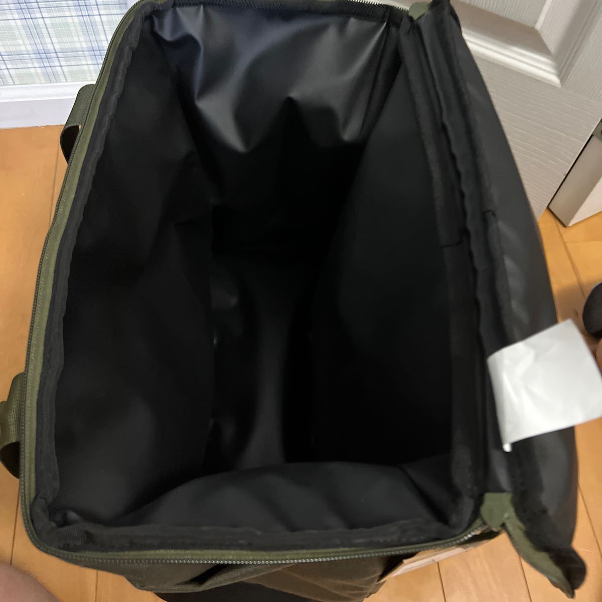 上部開閉は前、左右のコの字ジップです。