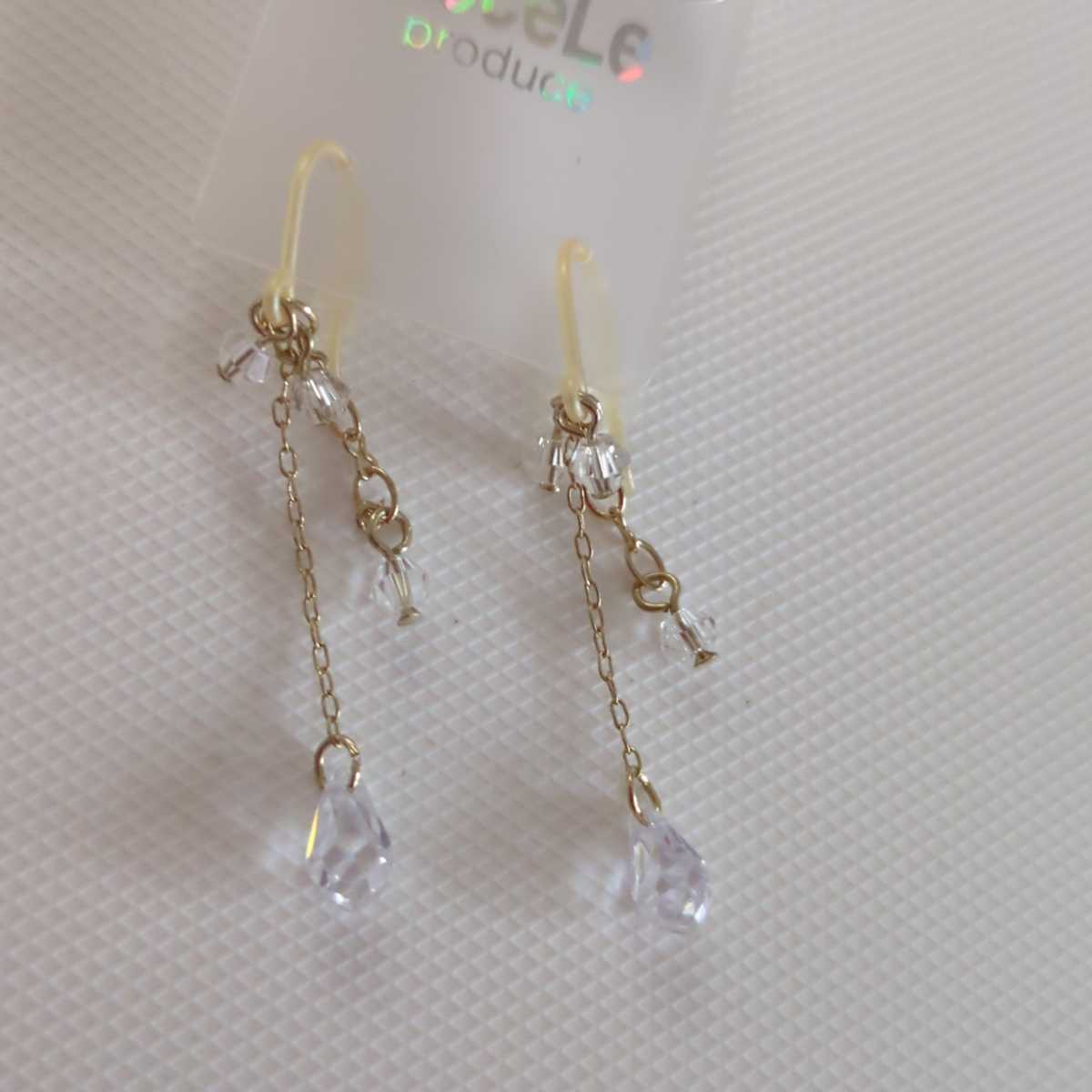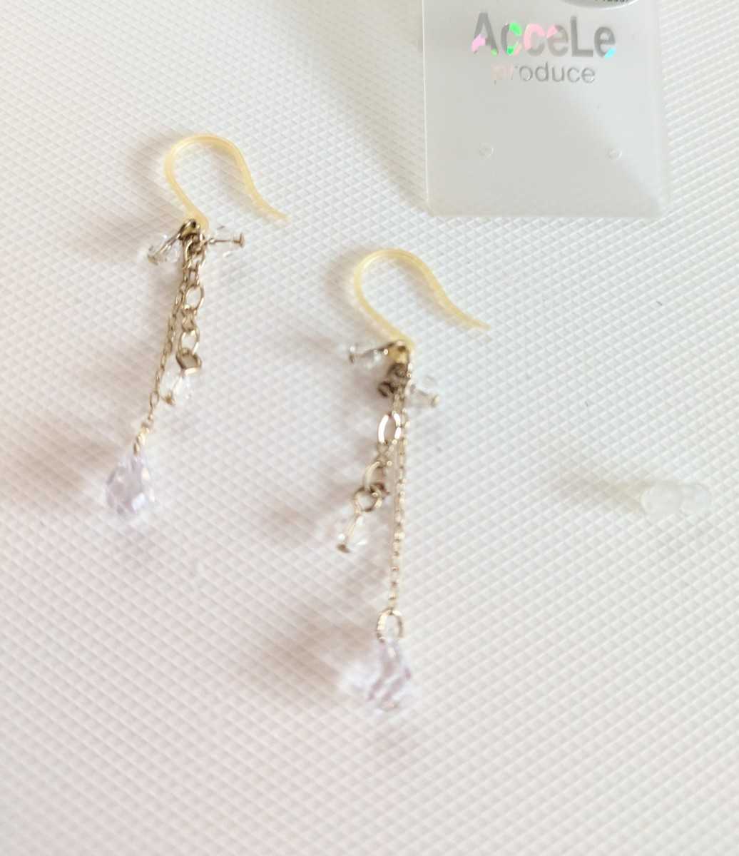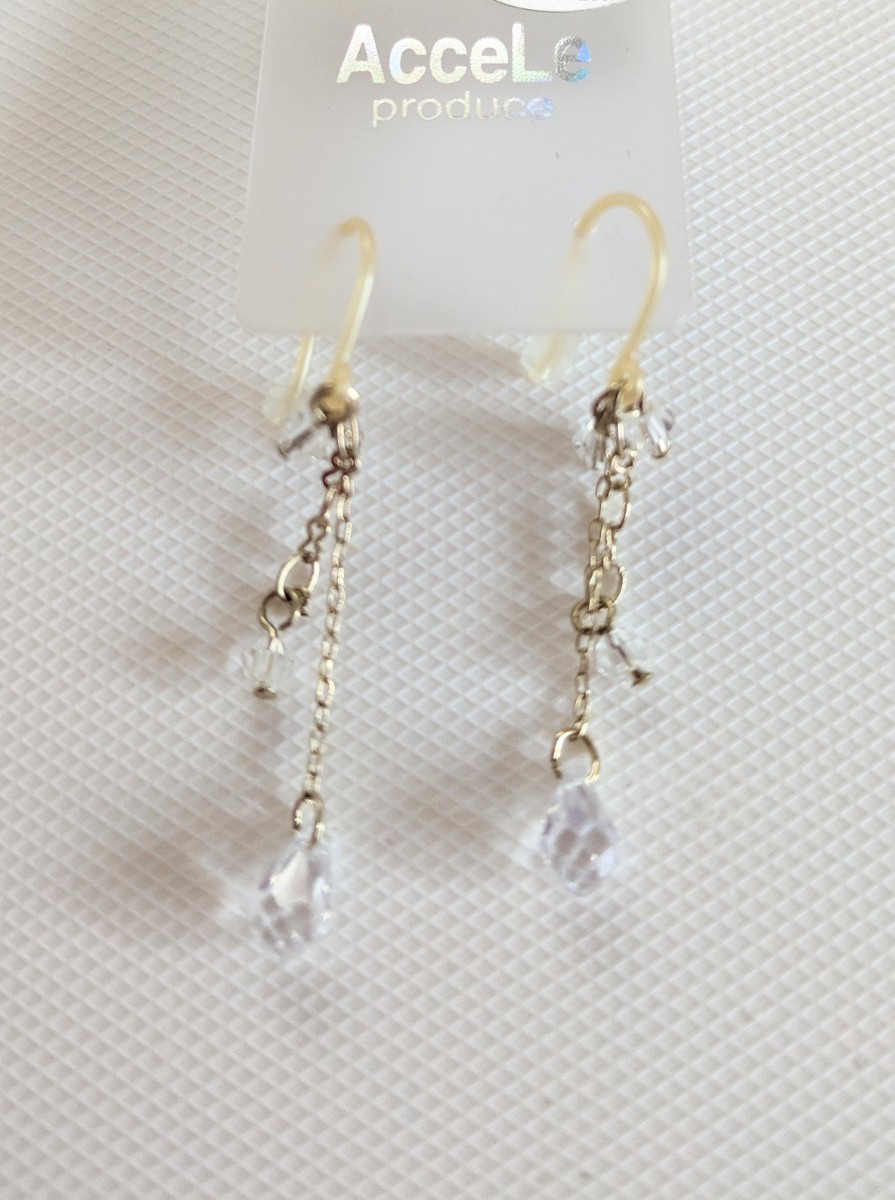 こちらは、新品未使用 AcceLe キラキラ アクリルビーズ ゴールドチェーン 樹脂フックピアス になります♪