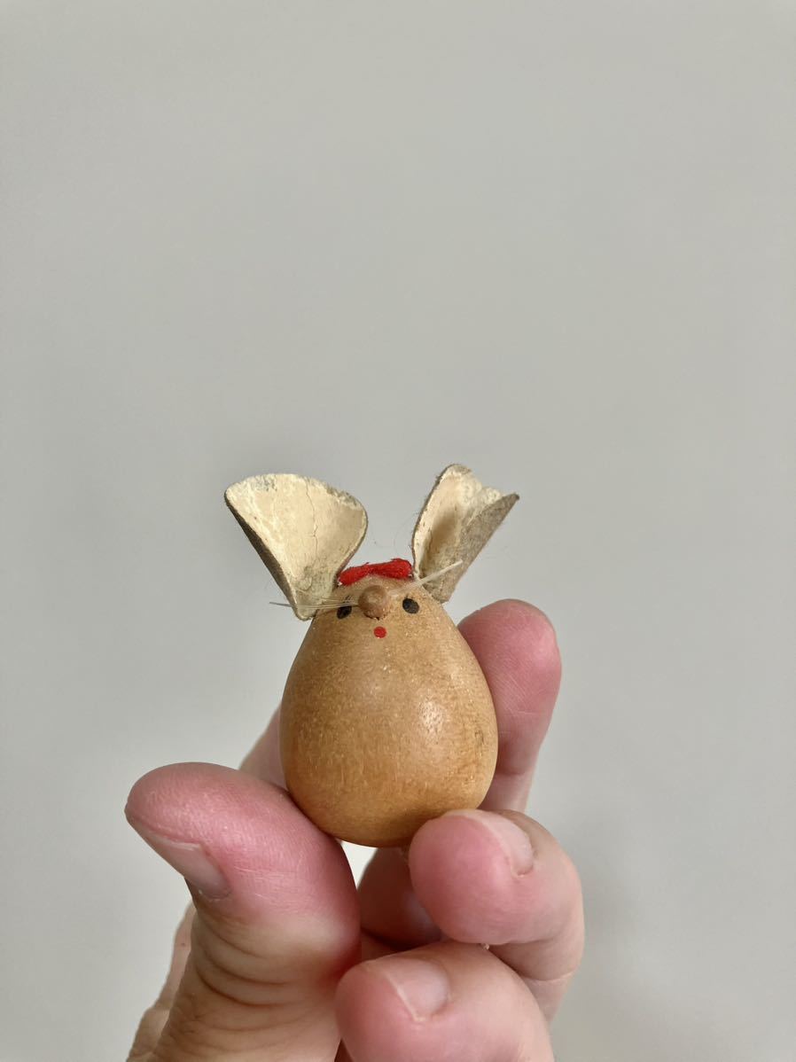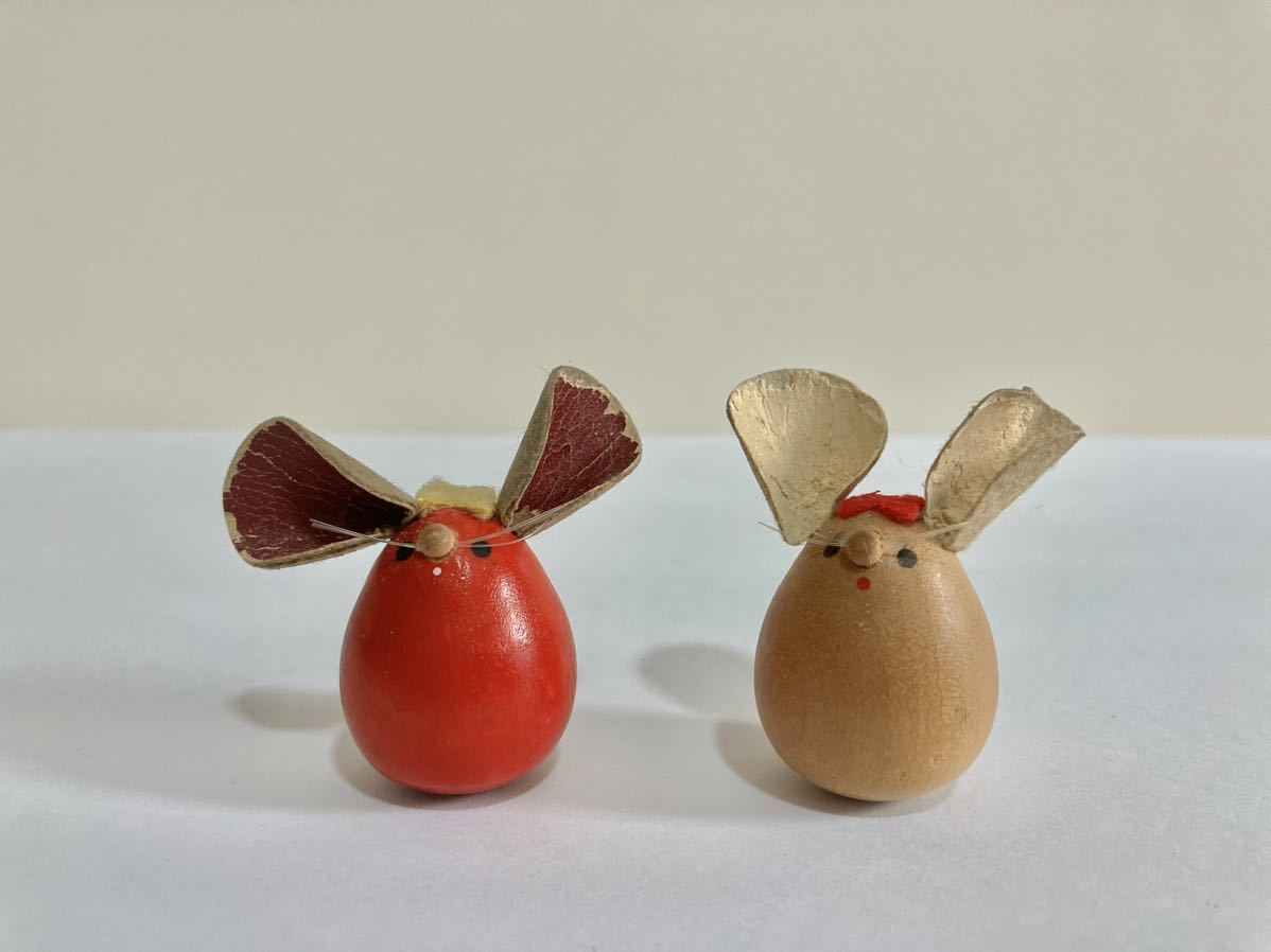 可愛い小さなネズミの起き上がり小法師です。耳の状態があまり良くないです。皮に似せた紙のような素材ですがペイントの剥がれあります。ご了承ください。