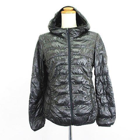 ユニクロ UNIQLO ダウンジャケット アウター 長袖 フード ジップアップ S グレー ※EKM レディース