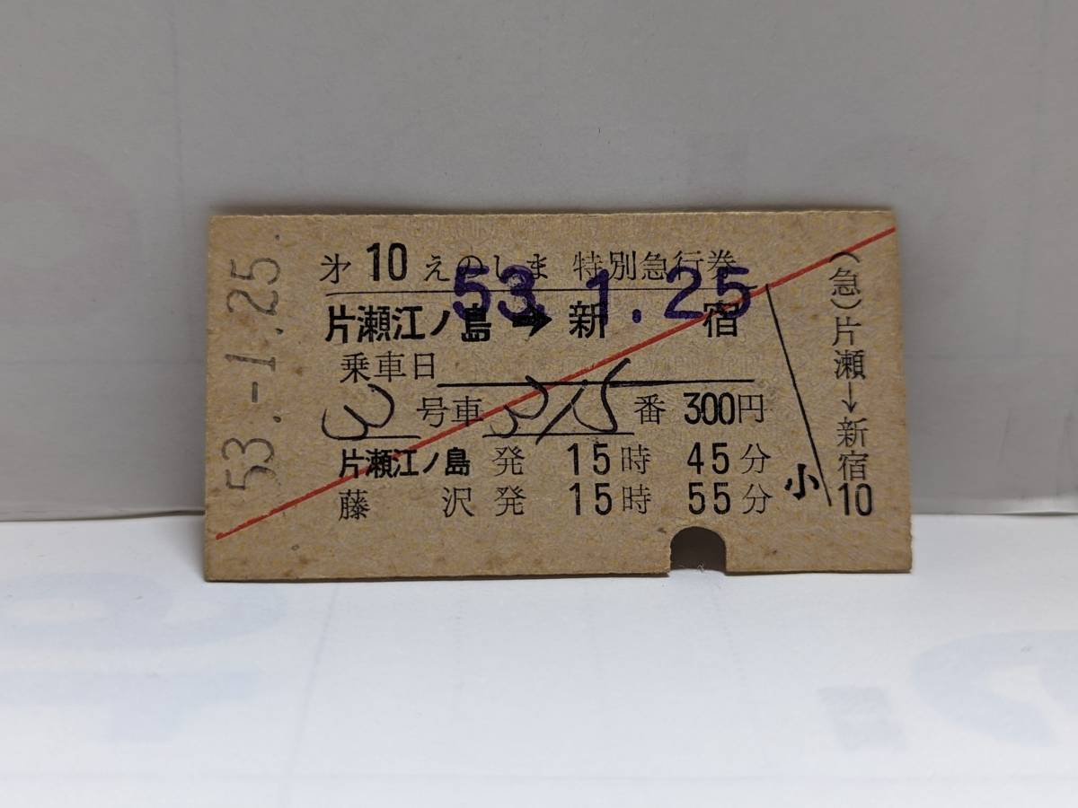 小田急 えのしま10号特別急行券(片瀬江ノ島駅53年1月25日発券)です。