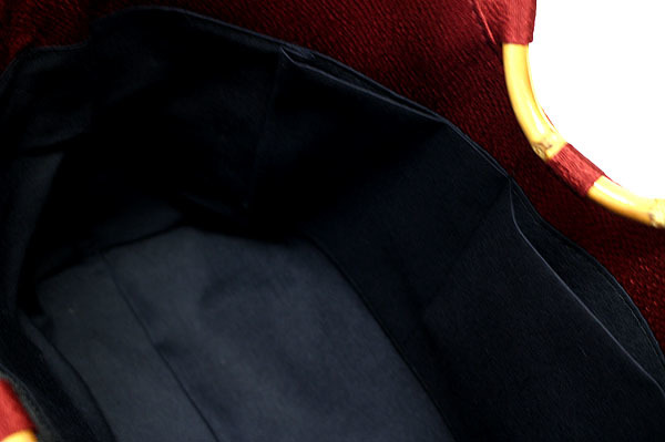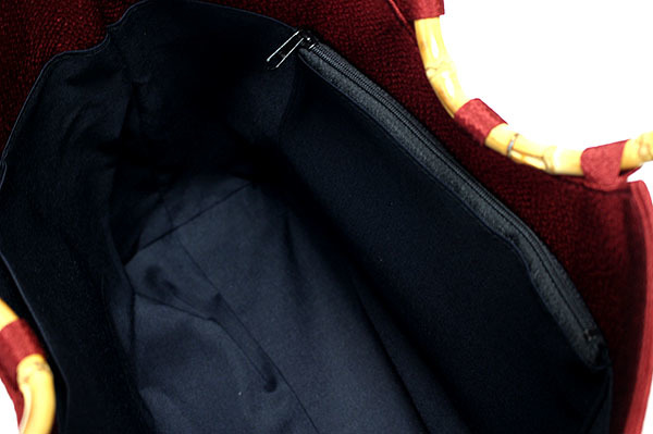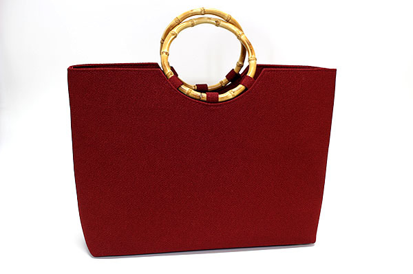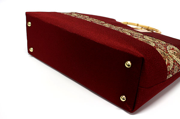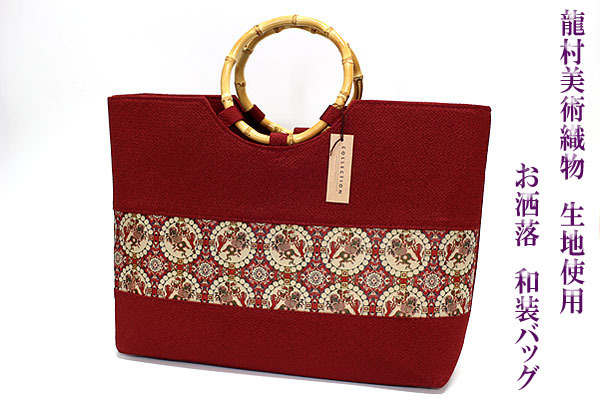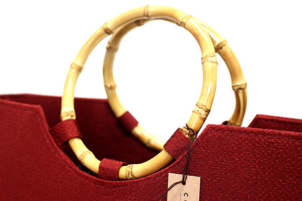 龍村美術織物生地とちりめん素材を使用しバンブー(竹)持ち手のお洒落なバッグになります。