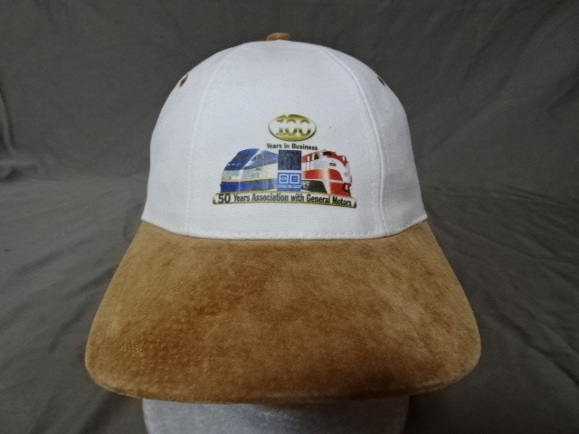 激レア USA企業モノ ゼネラルモーターズ【50years Association with general motors】列車プリント入り ツバ部分スウェード素材CAP中古良品