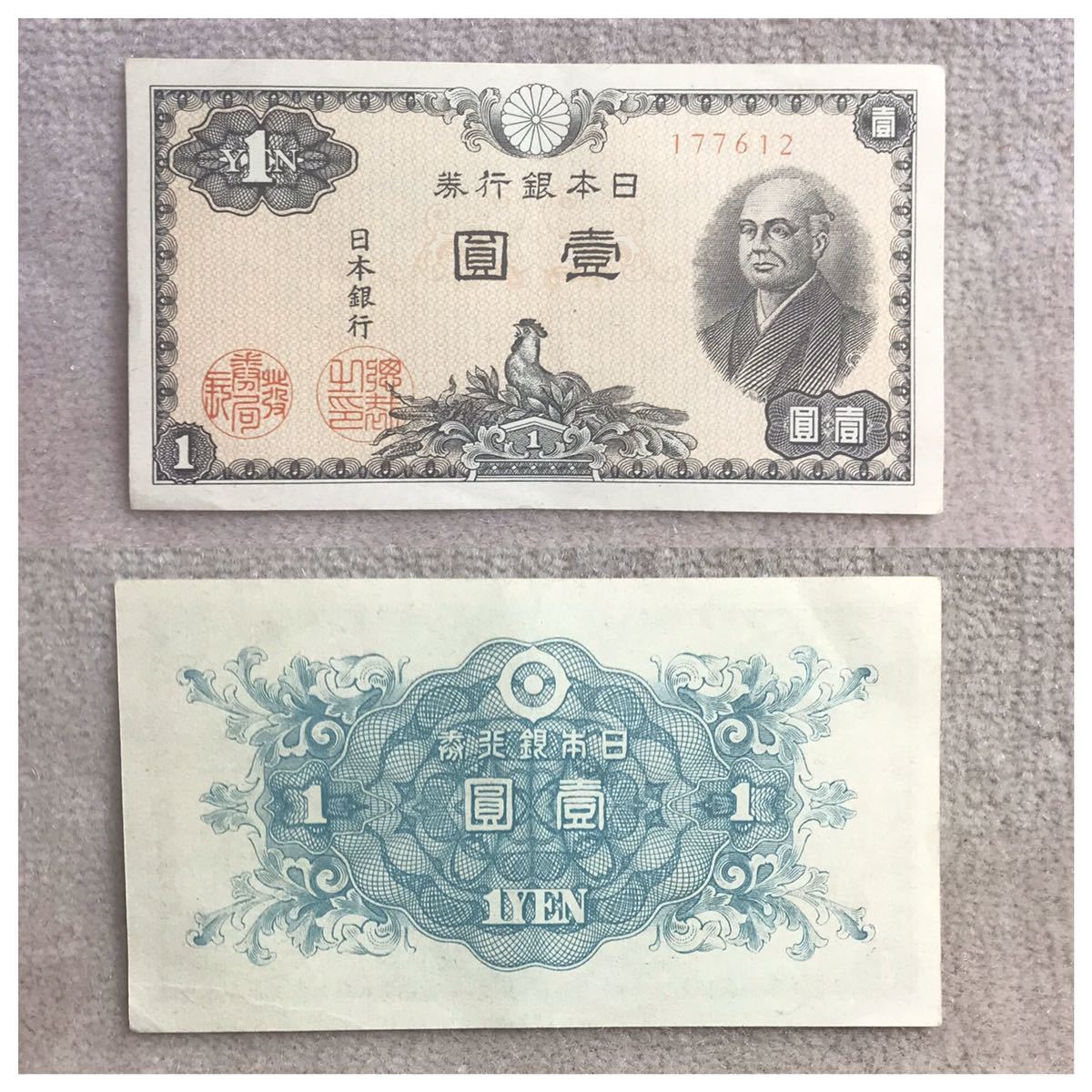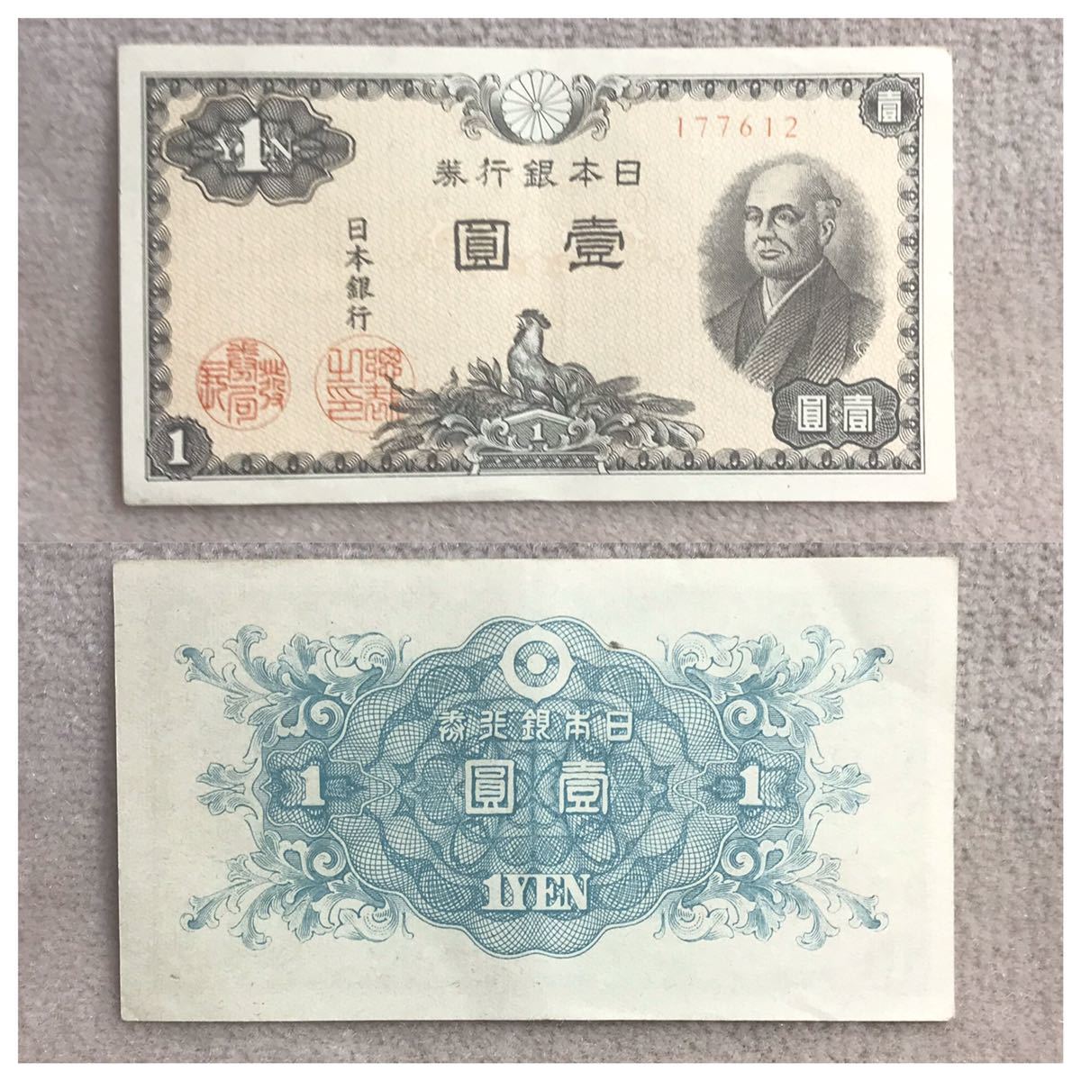 日本銀行券A号1円(二宮1円) 印刷記号12 印刷局滝野川工場 極美品〜未使用 4点セット