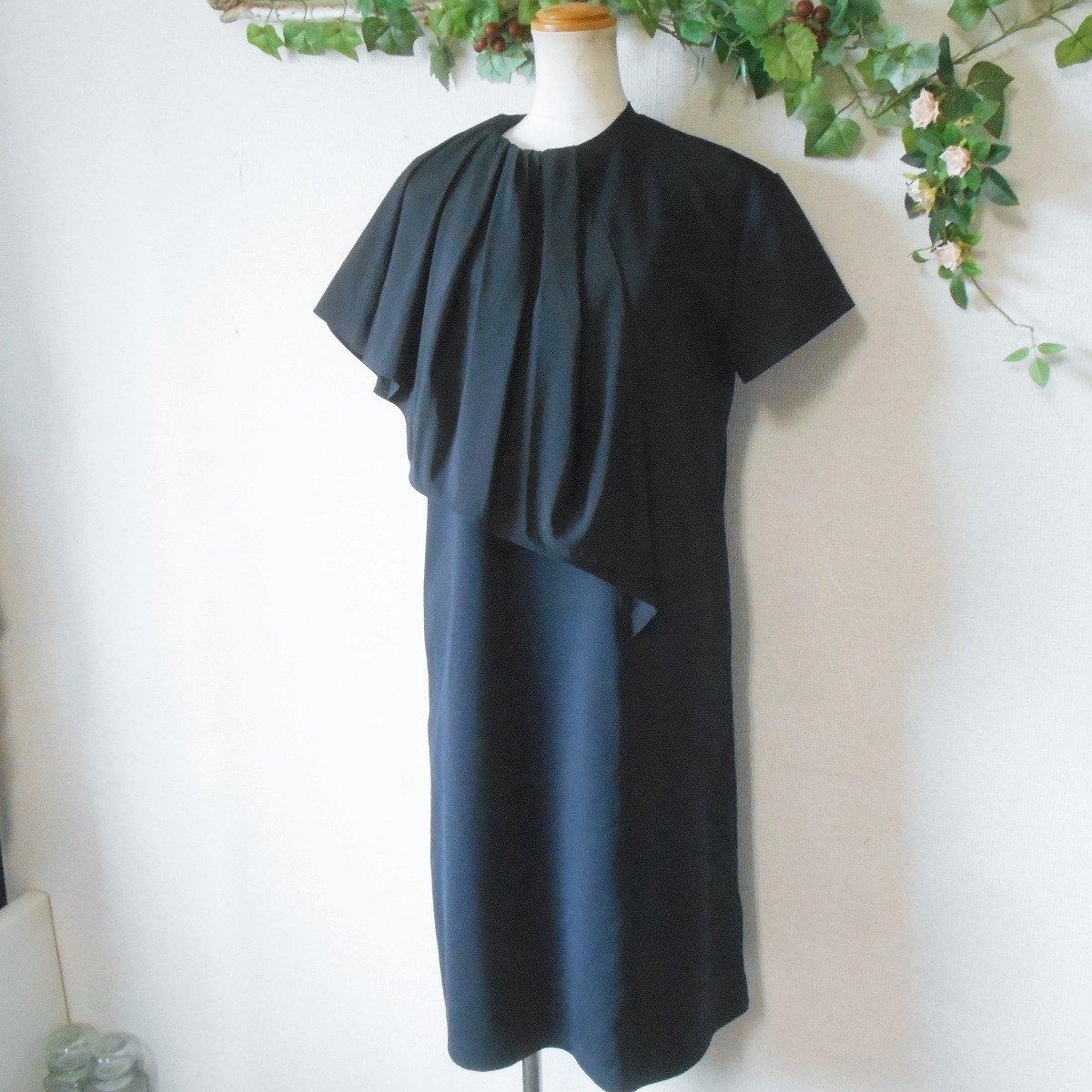 アキラナカ AKIRANAKA ワンピース フリル 付き レディース 2 黒 ブラック 日本製