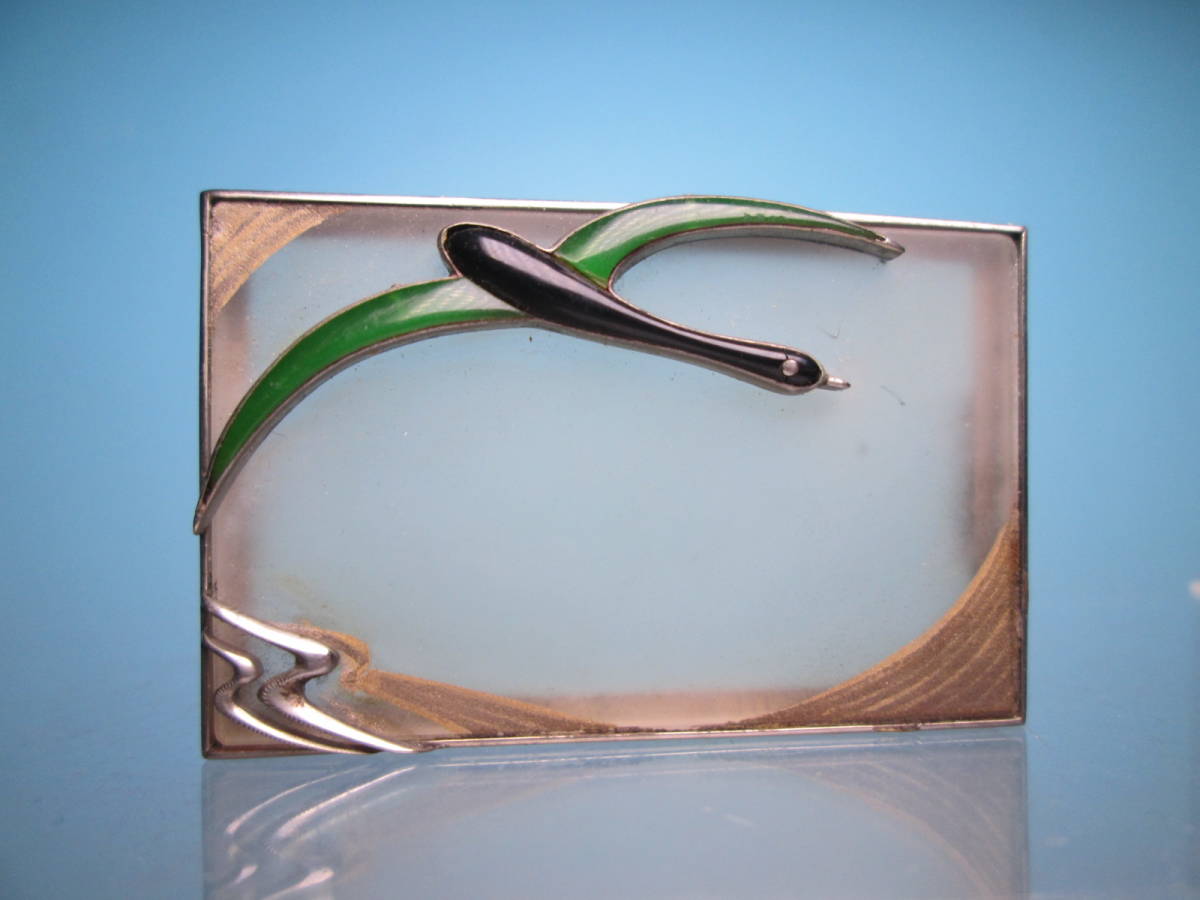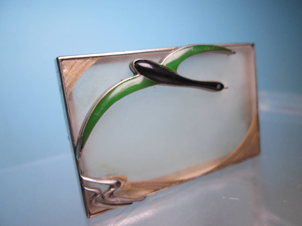 【江月】アンティーク・彫金細工 摺り硝子流水に雁の帯留め 16,52g 木箱付