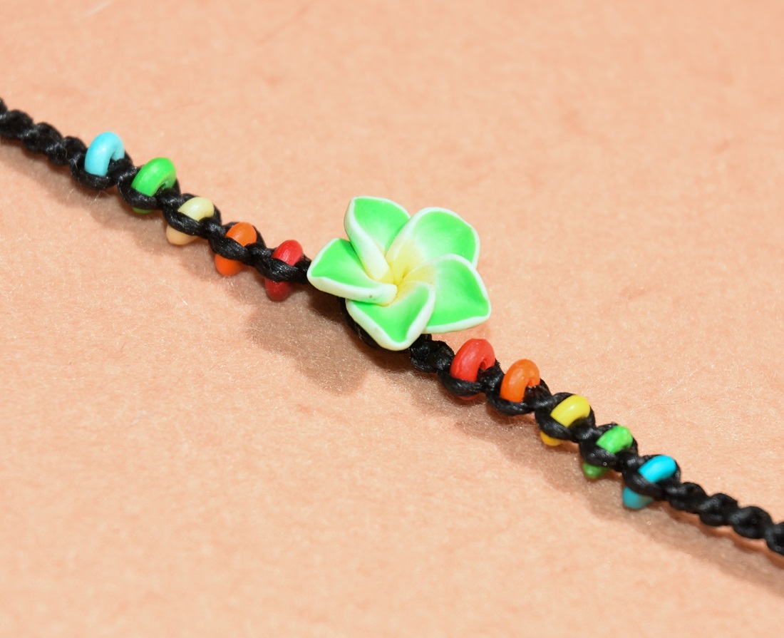 プルメリアビーズをワックスコードで編み込んだ、カラフルなミサンガです☆