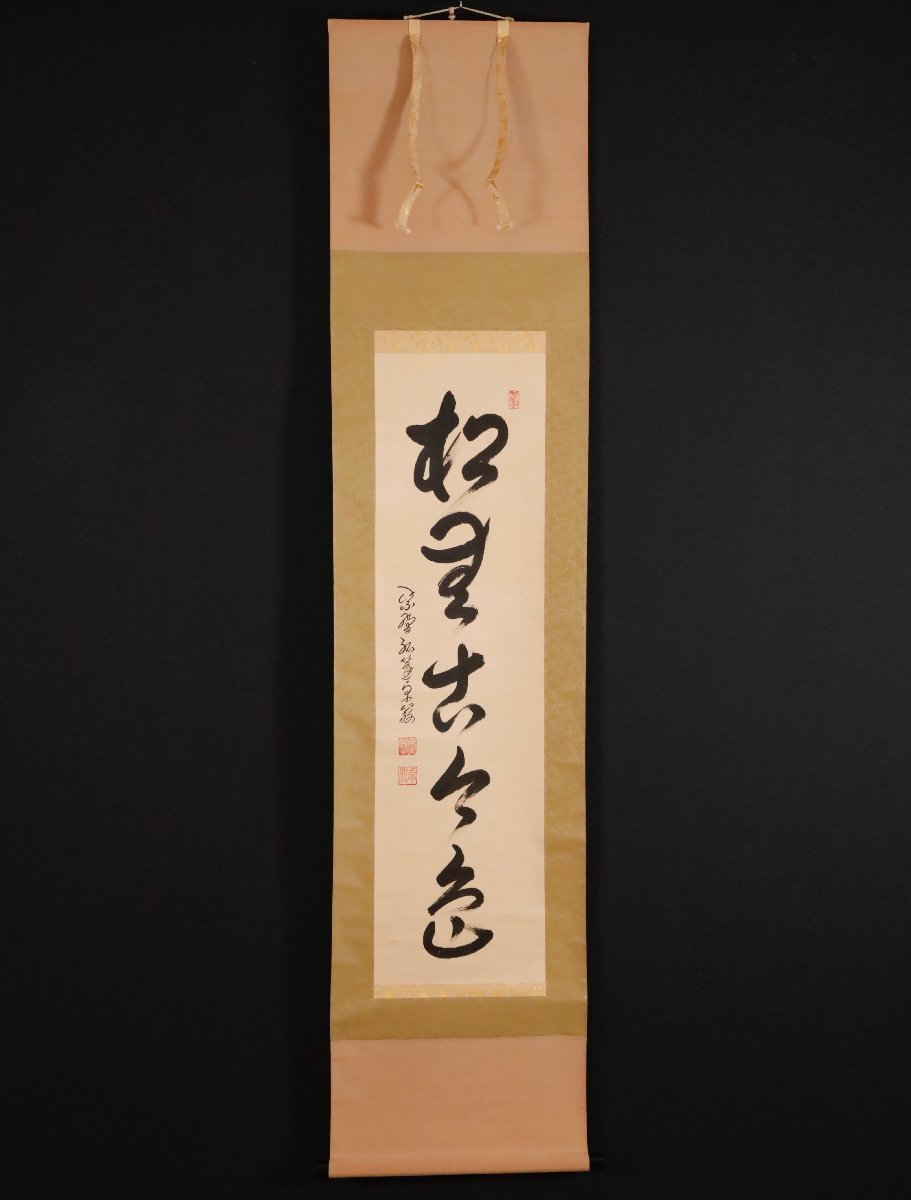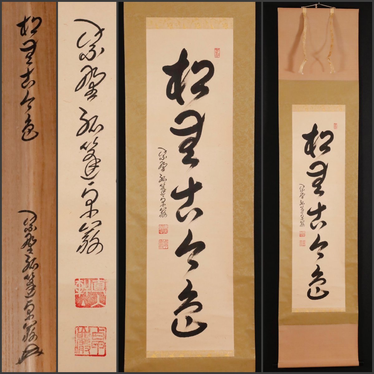 【模写】吉】9805 小堀卓巌 書「松無古今色」 共箱 孤逢庵 遠州流 臨済宗 大徳寺 愛知県 仏教 茶掛け 茶道具 禅語 掛軸 掛け軸 骨董品