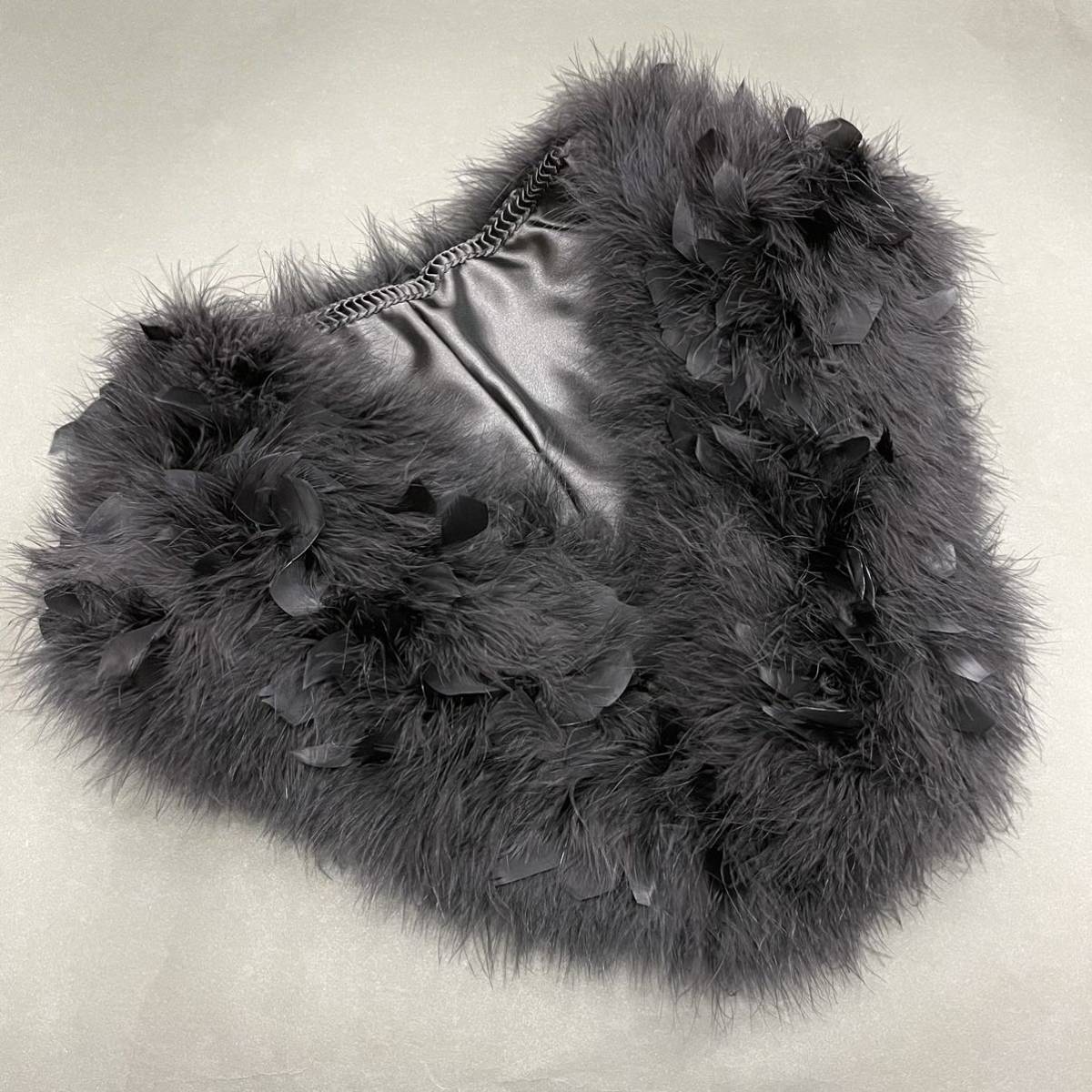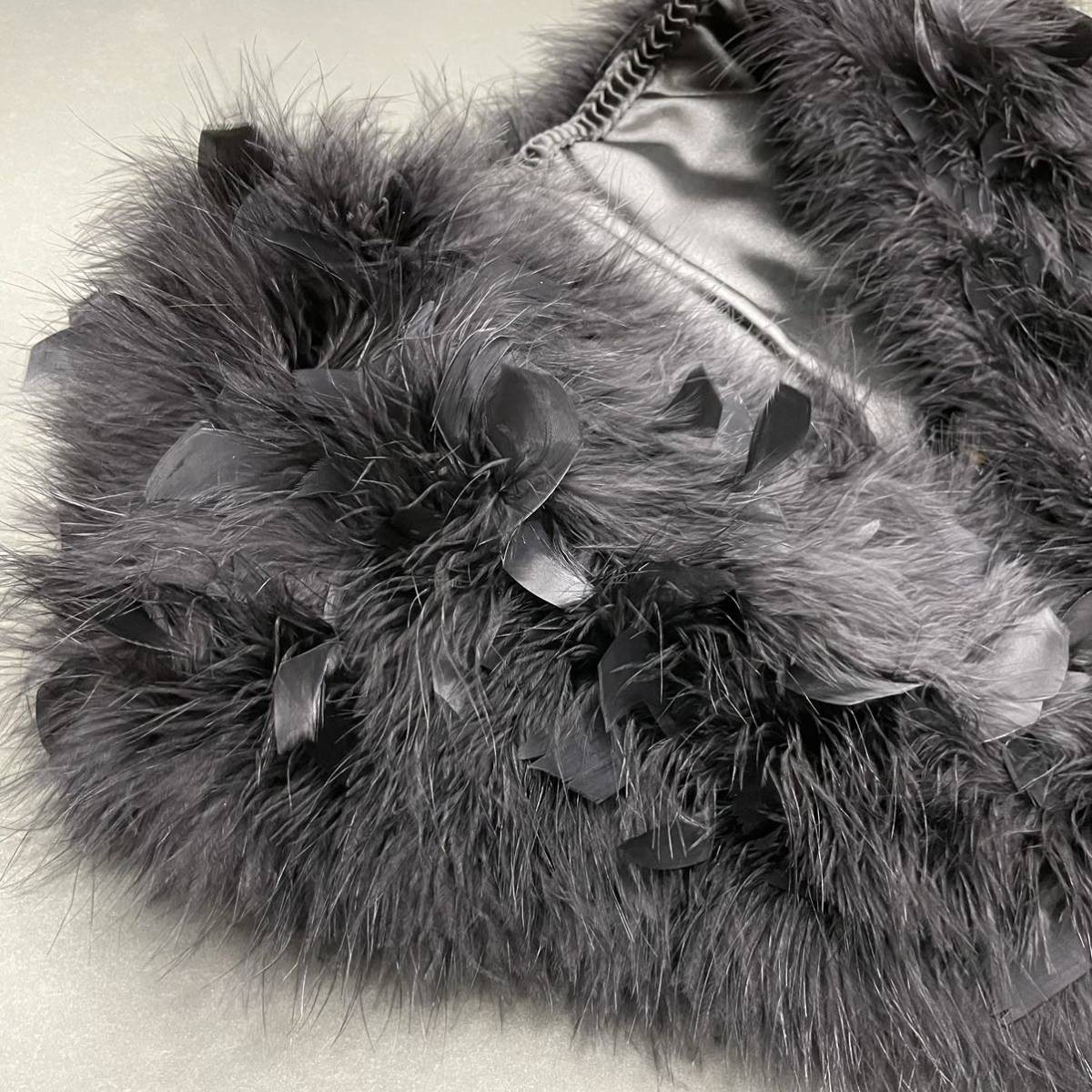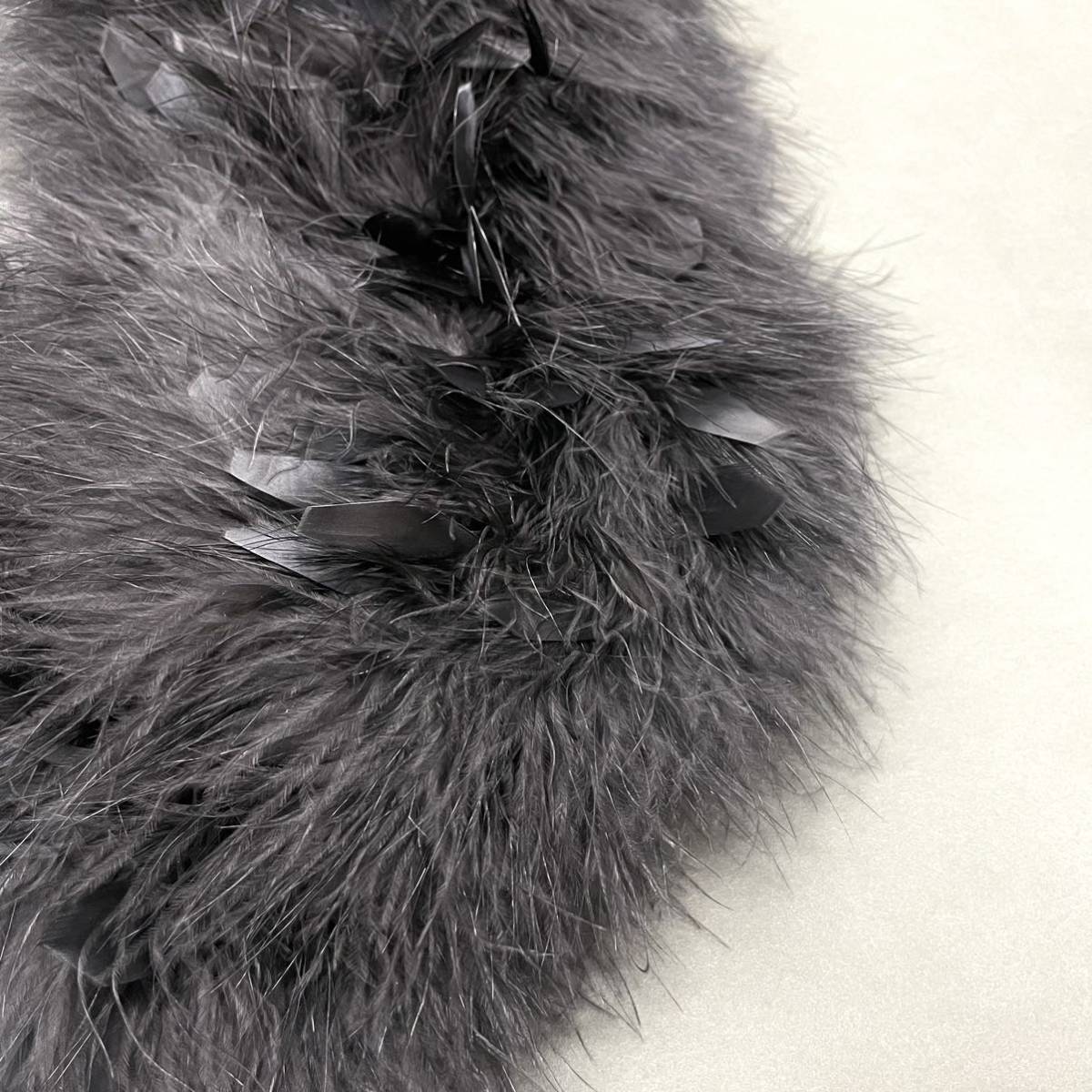 こちらはフェイクではなく【天然フェザー】でデザインされた真っ黒のショールとなっており、さらに【白鳥(スワン)】の羽根を混ぜることにより首元&襟元を美しく豪華な装いにしてくれる留め具付きのショールとなっております。