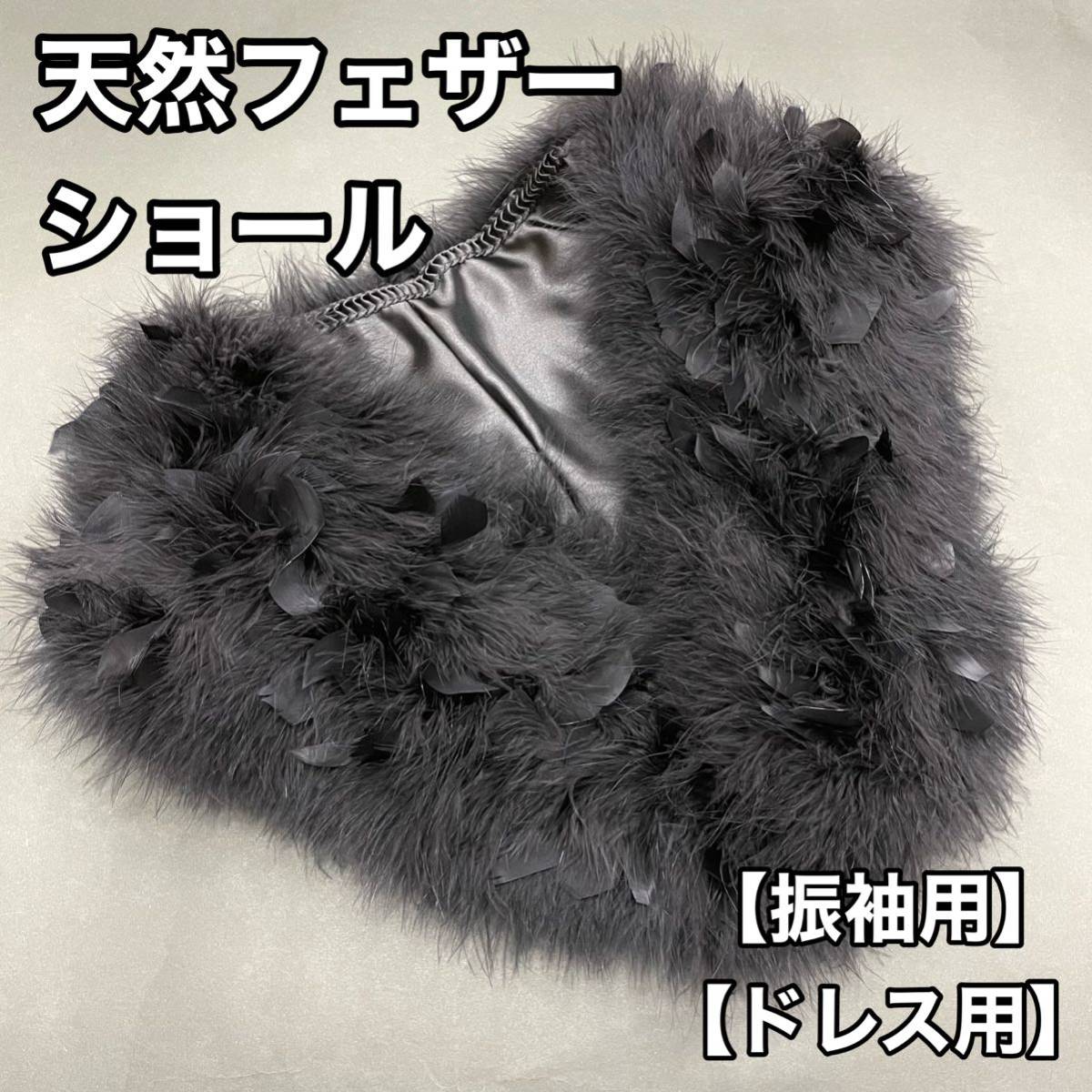 スワンショール 振袖用 成人式用 結婚式用 ショール ストール 黒色 黒 フェザー 羽根 ドレス 振袖 成人式 結婚式 天然 本物 羽毛 鳥