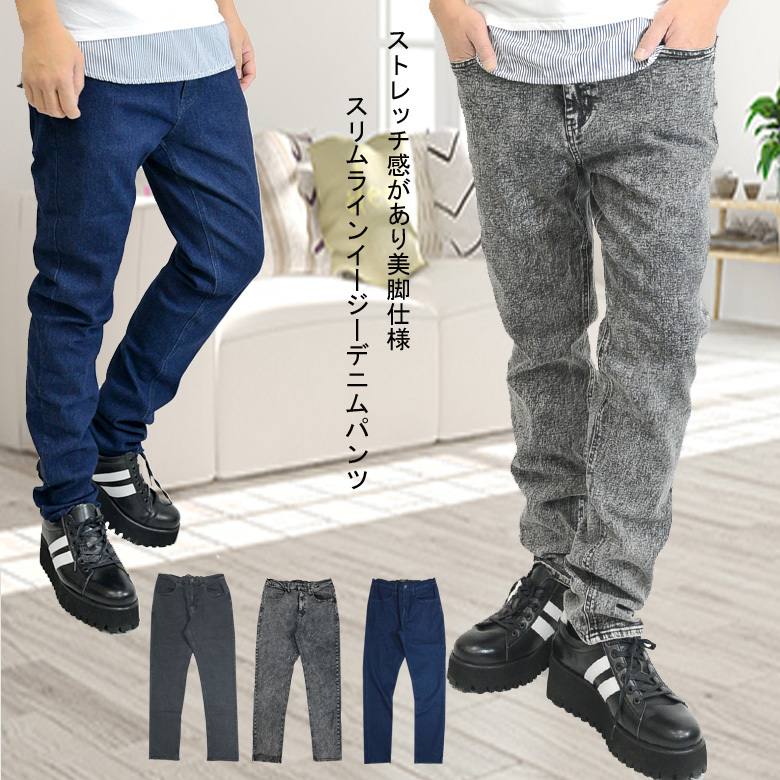 [商品ポイント] ストレッチパンツ/デニムパンツ/無地/イージーパンツ/ジップフライ/