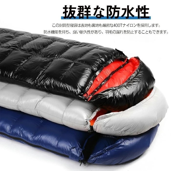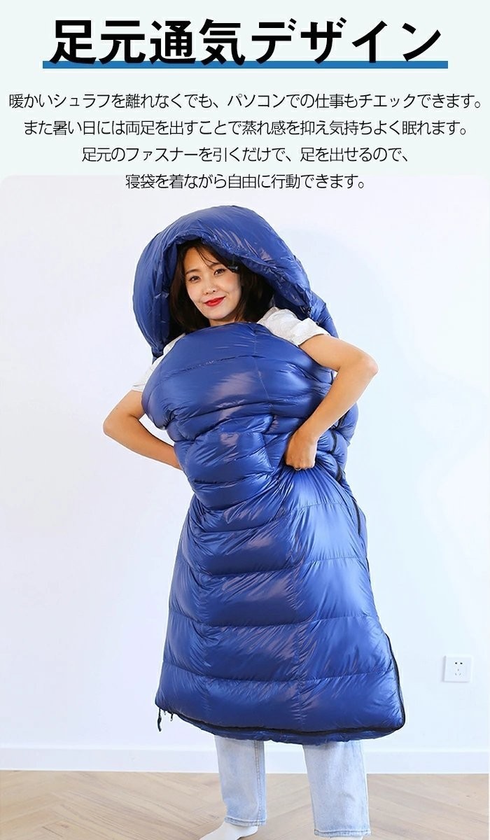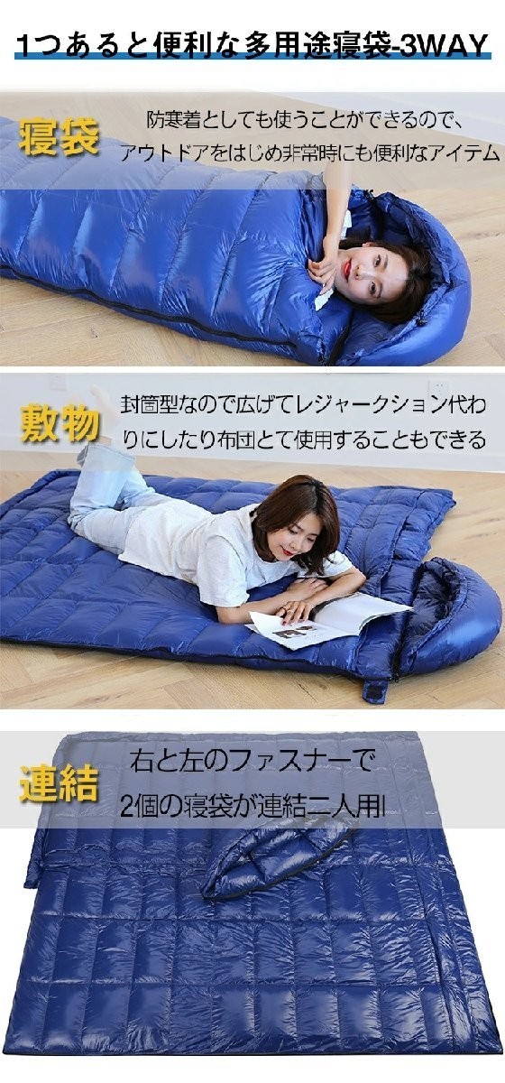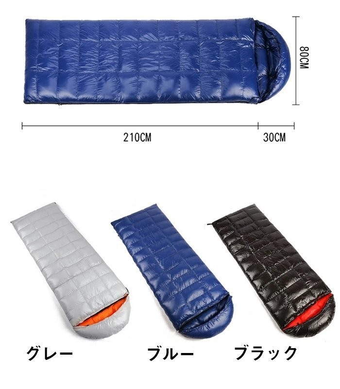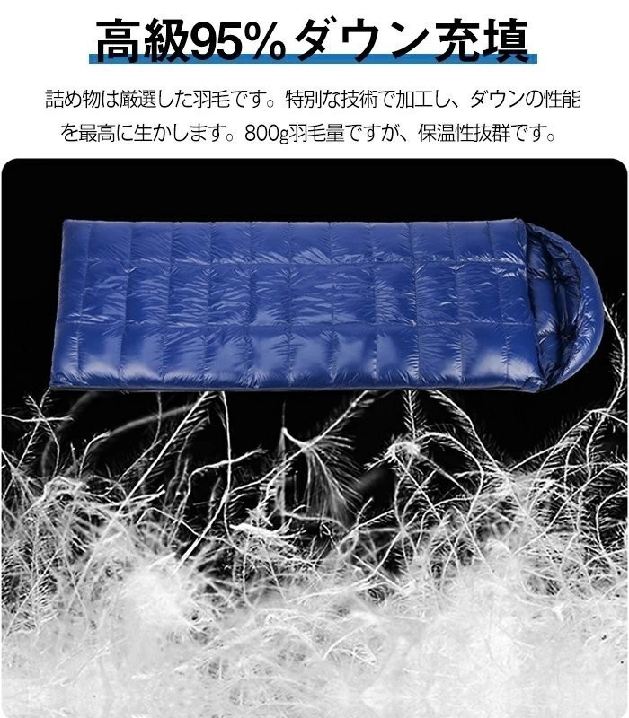 羽毛寝袋 ダウン シュラフ 封筒型 寝袋 95%羽毛 ダック 800g高級羽毛充填 四季通用 秋 冬 秋冬 軽量キャンプ用品 足が出せる 連結&全開可能