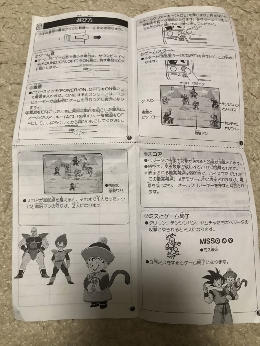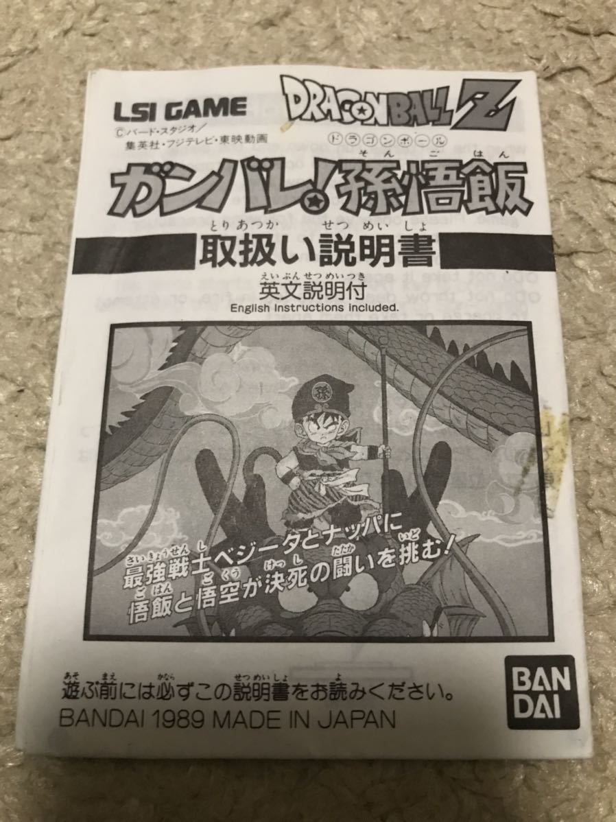 当時のポケットゲーム、ガンバレ孫悟飯の取扱い説明書になります。