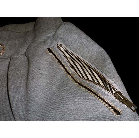 ポケットのとなりに黒とゴールドのラインがあります。