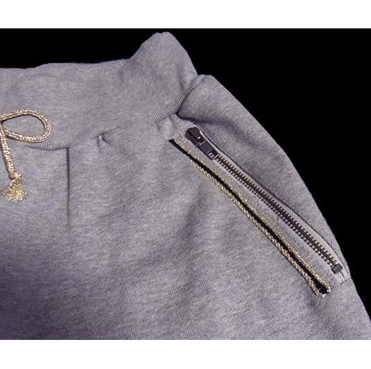 ウエストの紐もゴールドです。