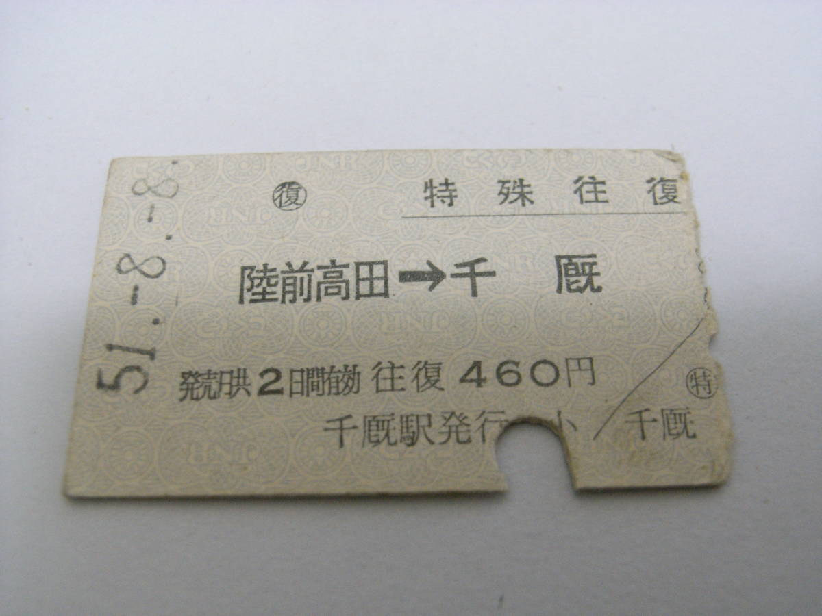 特殊往復 大船渡線 陸前高田→千厩 昭和51年8月8日 千厩駅発行 国鉄