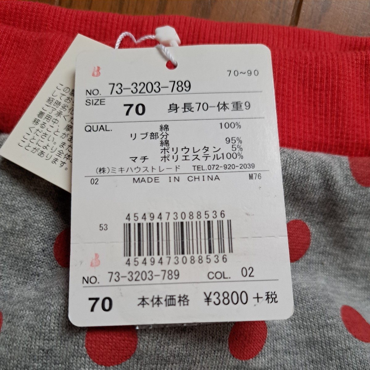 こちらの商品は、B級品ですのでタグにB印が押してあります。