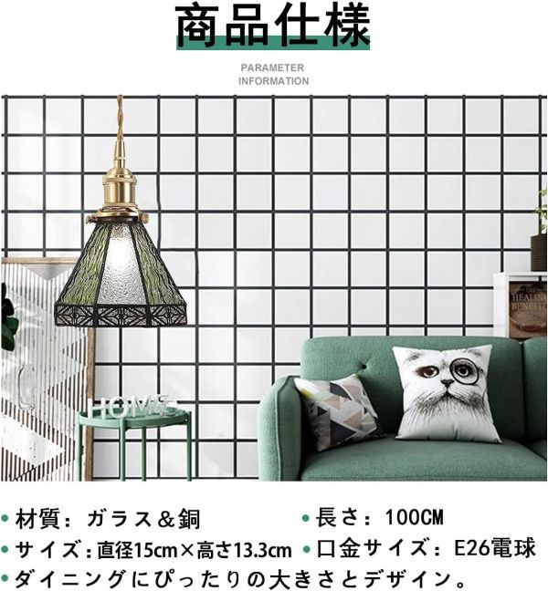 • 【商品仕様】材質:ガラス&銅。コード長さ:100cm。サイズ:Φ15xH13.3cm。取り付け方法:ダクトレール式。コードカラー:グリーン  笠型。取り付け方法:引っ掛けシーリング式。電球ワット数:60W。口金:E26。消費電力:85-265V。LED電球対応、調光対応、(電球は別売り)