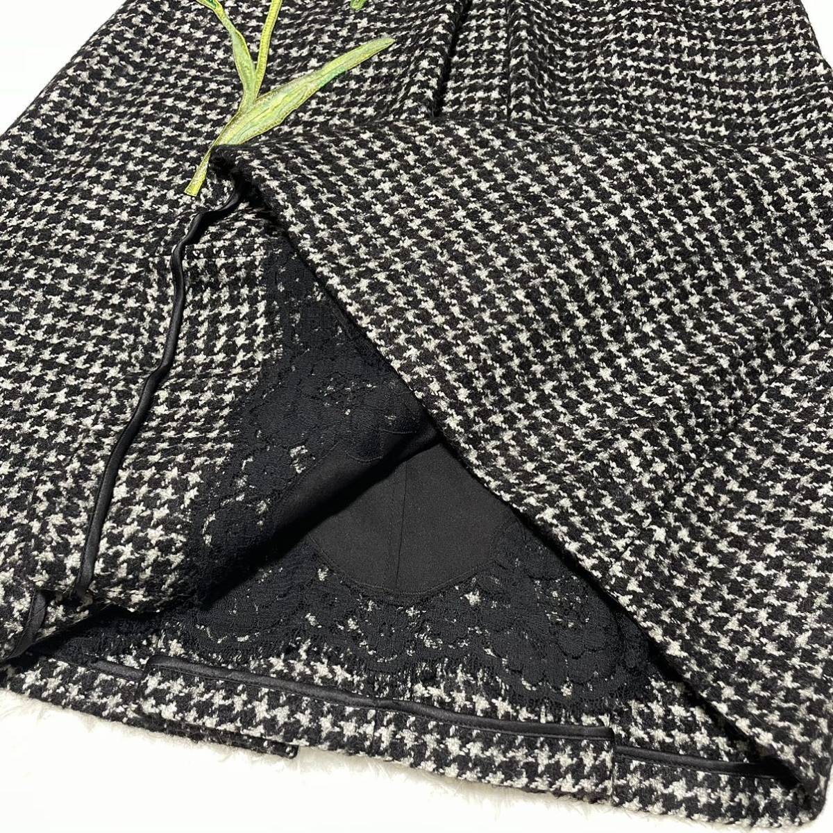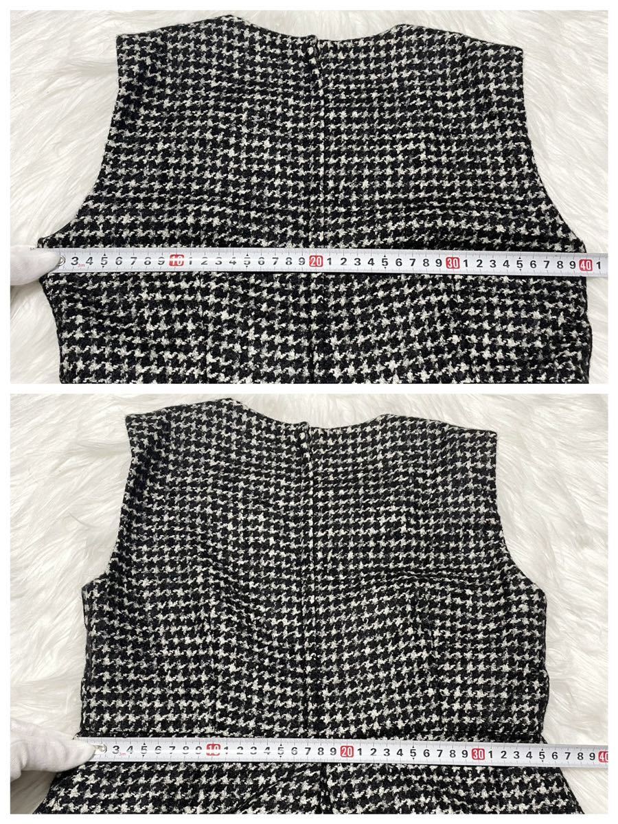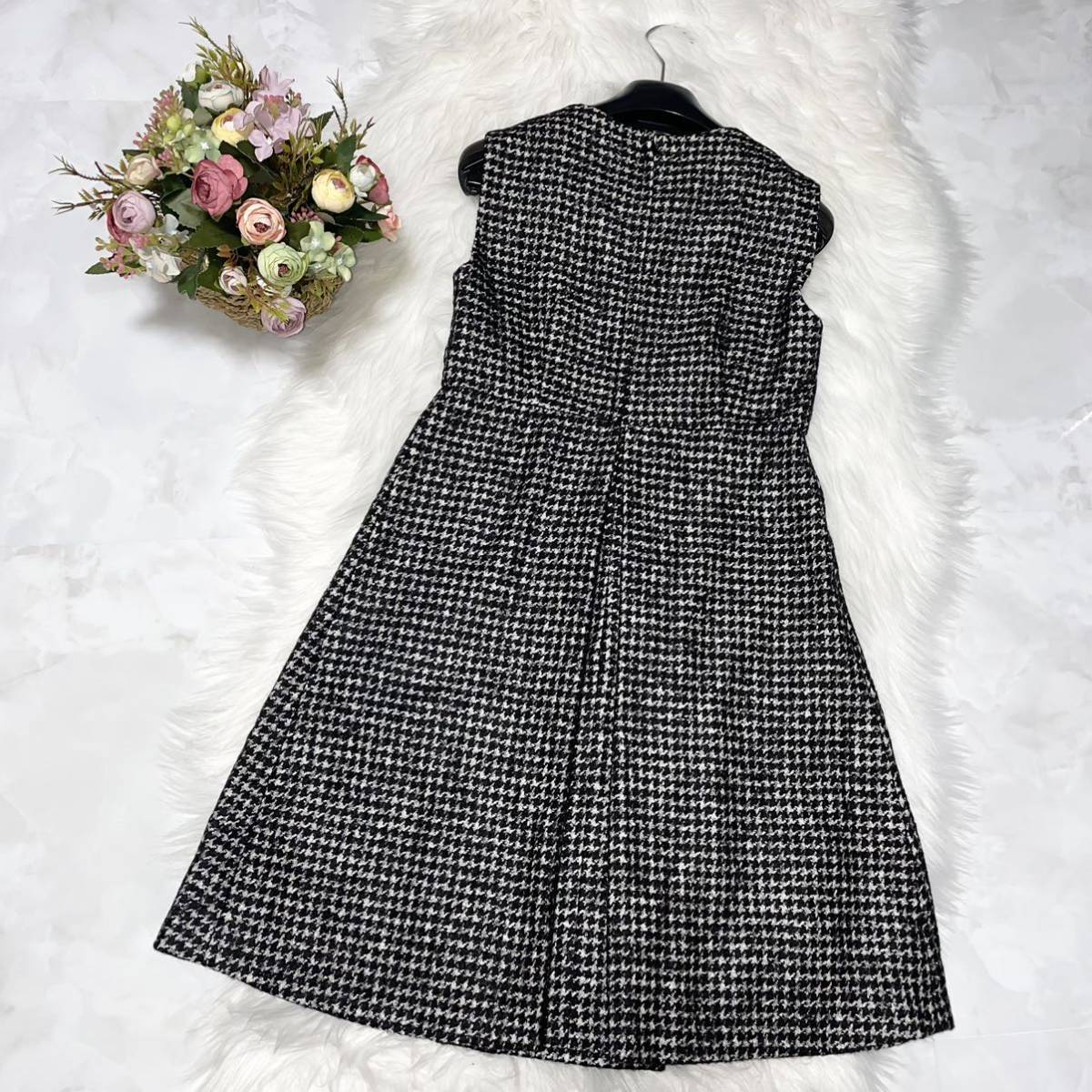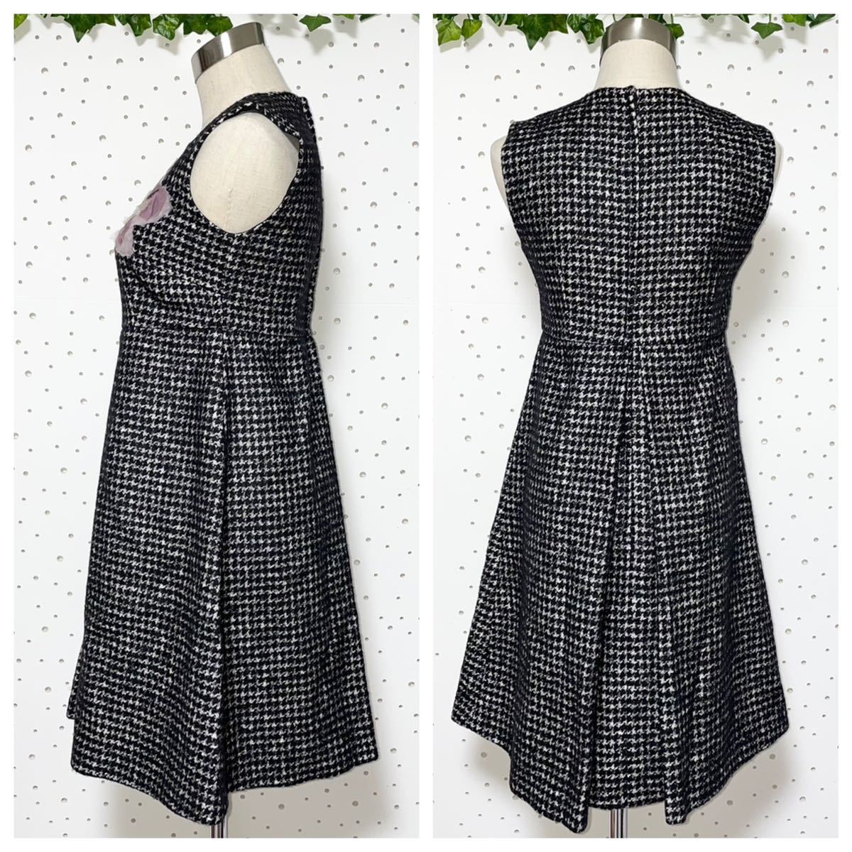 本物 美品 ドルチェ&ガッバーナ フラワー 装飾 刺繍 千鳥格子柄 ツイード ノースリーブ ワンピース ドレス 36 ドルガバ DOLCE&GABBANA | |||