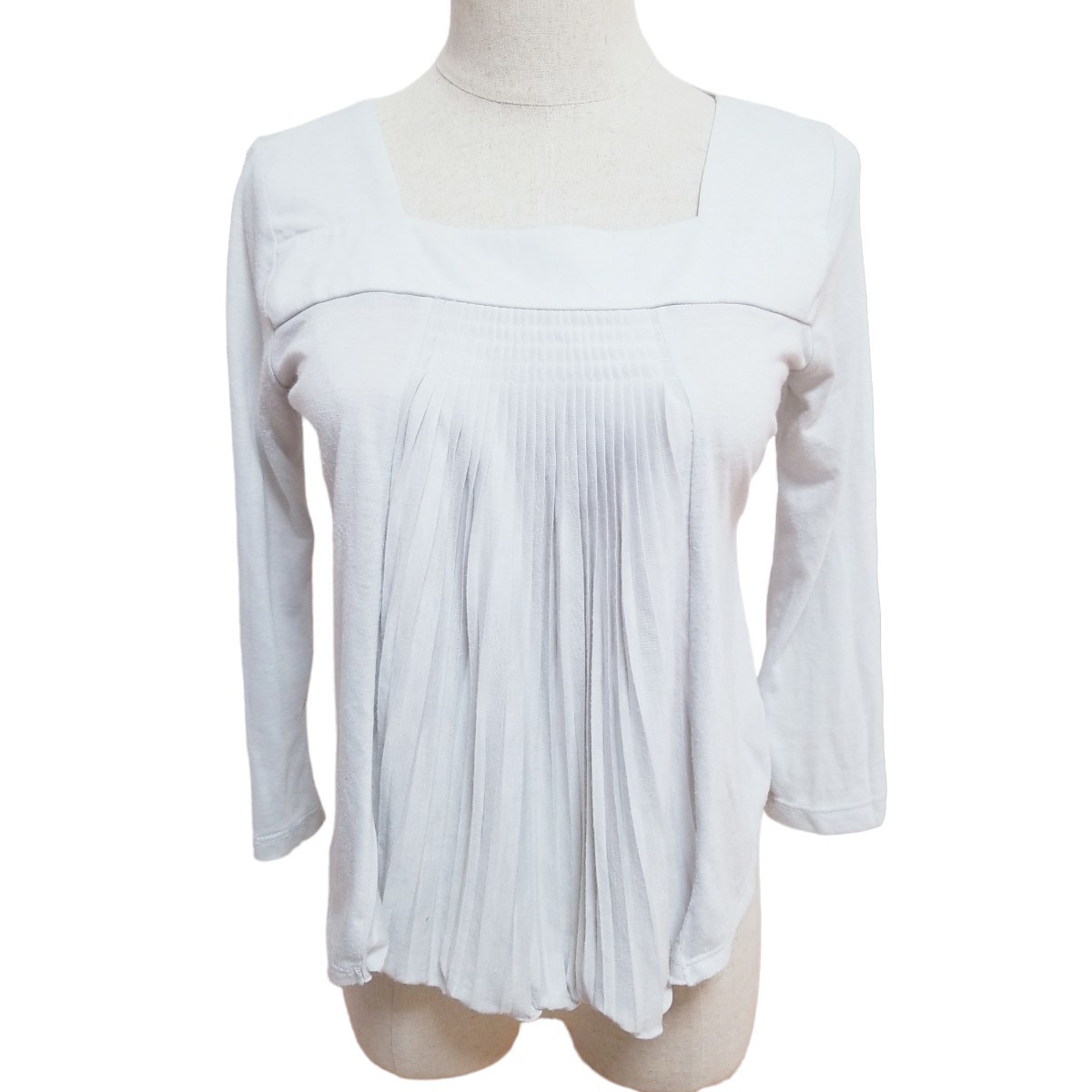 ★Y1036 NEWYORKER ニューヨーカー フロントプリーツ 長袖カットソー ショート丈 薄手 レディース M グレー