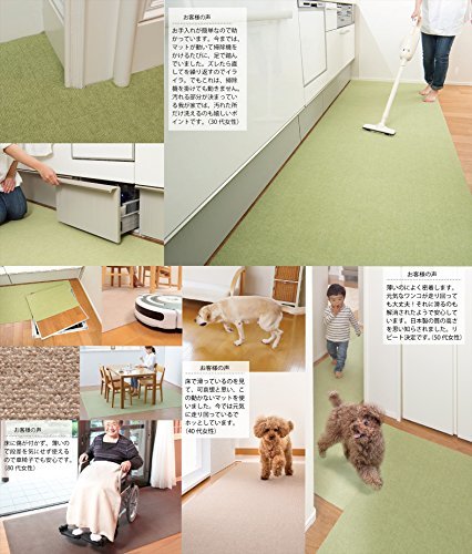 ロング・ブラウン 60×120cm KL-42・・Size:60×120cmColor:ブラウンPatternName:カーペットタイプ・サイズ:60×120cm、(厚み4mm)・材質:表面/ポリエステル、裏面/アクリル樹脂(カテキン入り)・原産国:日本・洗濯:洗濯機OK・洗濯:乾燥機不可動き回るキッチンにピッタリ、おくだけで動かないロングタイプのキッチンマット 薄くて、ズレない、つまずかないマット 薄いのでドアの開閉やキャスターワゴンなども引っ掛かることがありません 裏面に吸着加工を施しているのでマットがズレることがない 剥がすのは、端からめくるだけで簡単に取り外しできる 掃除機を掛けても吸い上がらない吸着力 長方形のマットで、ジョイントすれば、L字型のキッチンにも敷くことができる サイズが合わない時は、カットして使え、ほつれることはありません 床下収納に合わせてカットすることも可能 汚れたら、繰り返し洗濯できる 床のキズ・汚れ防止にも役立つ はっ水加工 床暖房対応