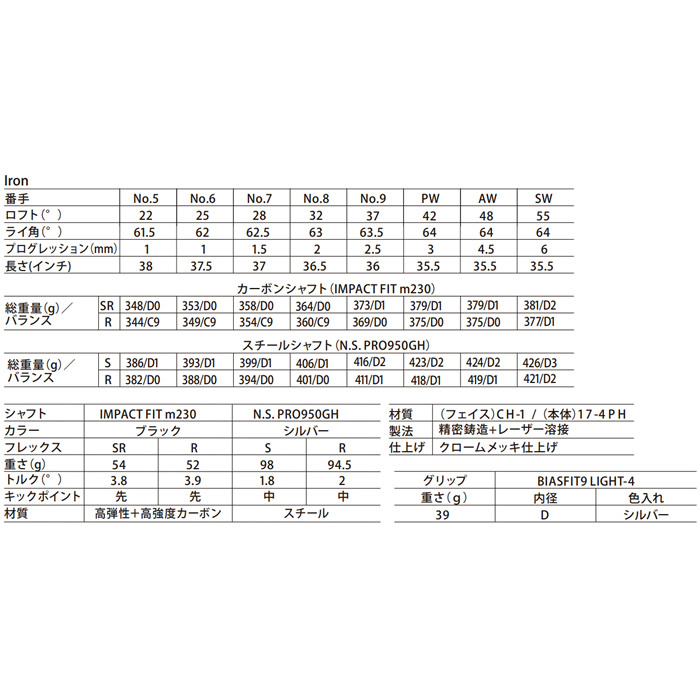 シャフト純正  IMPACT FIT m230   硬さ  (SR)