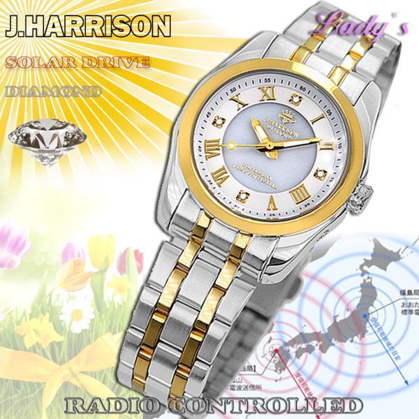 J.HARRISON ジョンハリソン 4石 天然ダイヤモンド レディース 女性用 ソーラー電波時計 腕時計 JH-096LGW (17) 新品