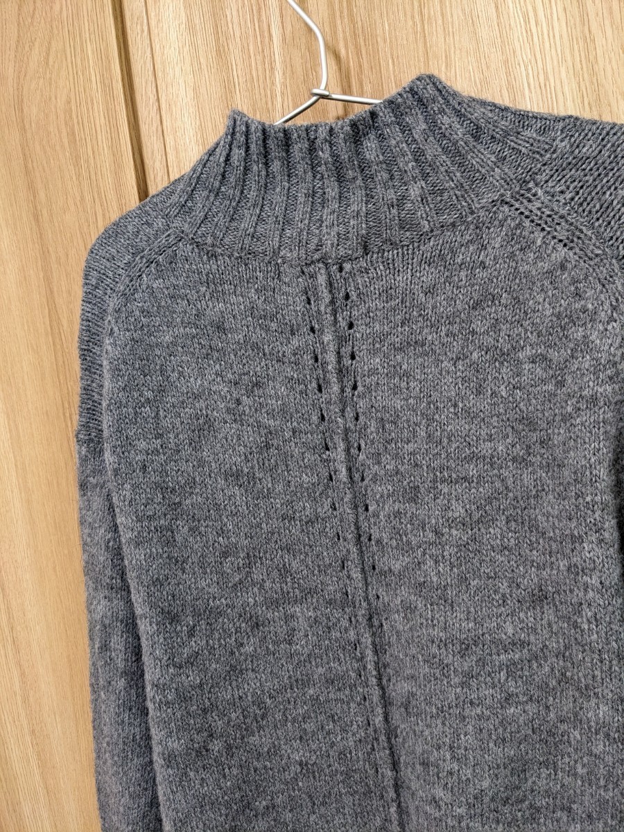 ■デザイン : ふんわりとした女性らしい編み感/後ろ中心のスリットやアイレット柄を施した雰囲気のあるデザイン