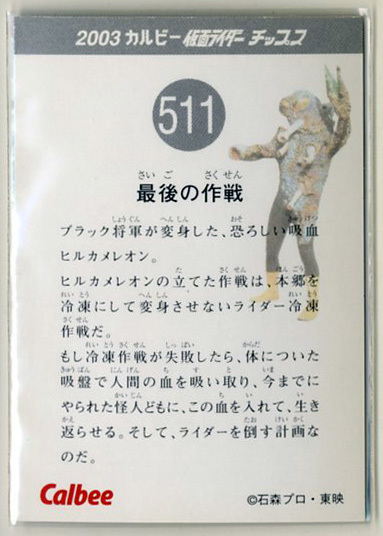 | ◆防水対策 厚紙補強 カルビー 仮面ライダーチップスカード(2003 復刻版) 511番 最後の作戦 トレカ 即決 | |
