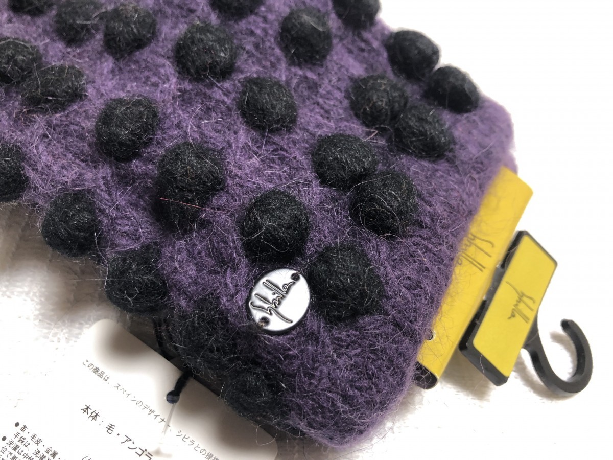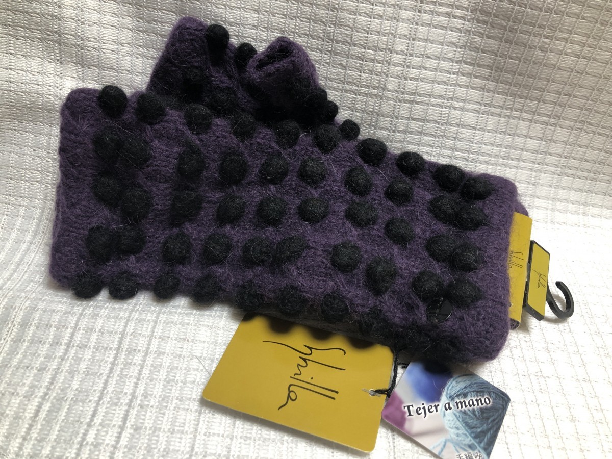 ☆新品☆シビラ/可愛い手編みニット手袋/指なし/ぼこぼこドットパープル×黒