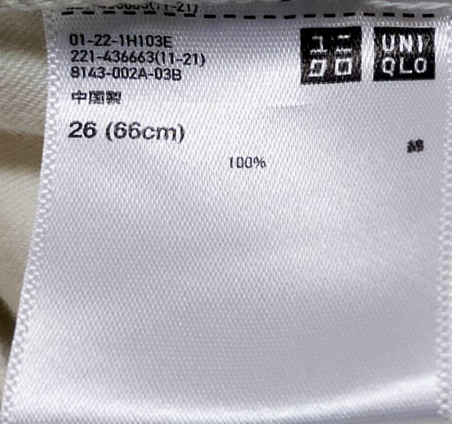 [美品]ユニクロ ボトムス 白 綿 100% スラックス ズボン 綿パン 26