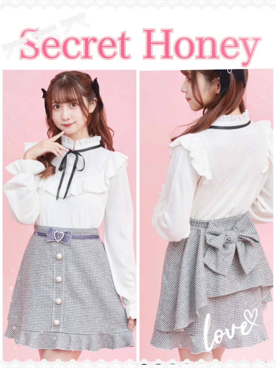 シークレットハニー Secret Honey ハートリボンバッスル台形スカート (グレー)