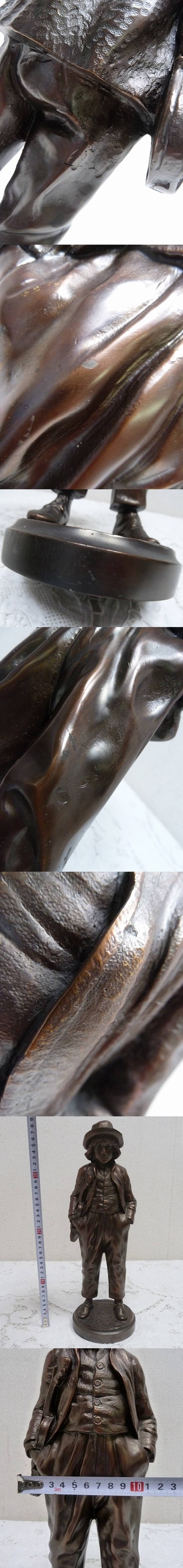 (☆BM)【感謝特別価格】銅製 バイオリン弾きの少年/銅像 高さ39.5㎝/6.5kg 全身 人形 彫刻 彫金 置物 オブジェ アンティーク調 レトロ
