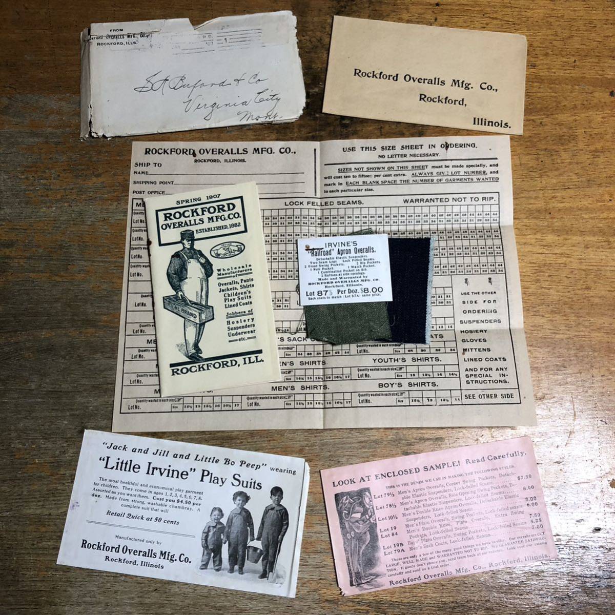 当時の大手メーカー「Rockford Overalls Mfg Co/Rockford Illinois(1882-1926)」の1907年の資料セットです。