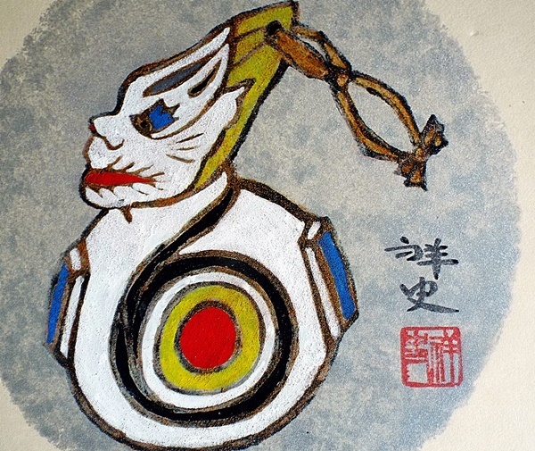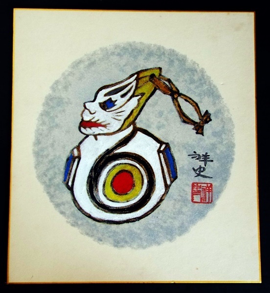 6452☆☆真作・肉筆色紙・佐久間祥史・龍・郷土玩具・中村岳陵門・共タトウ入☆