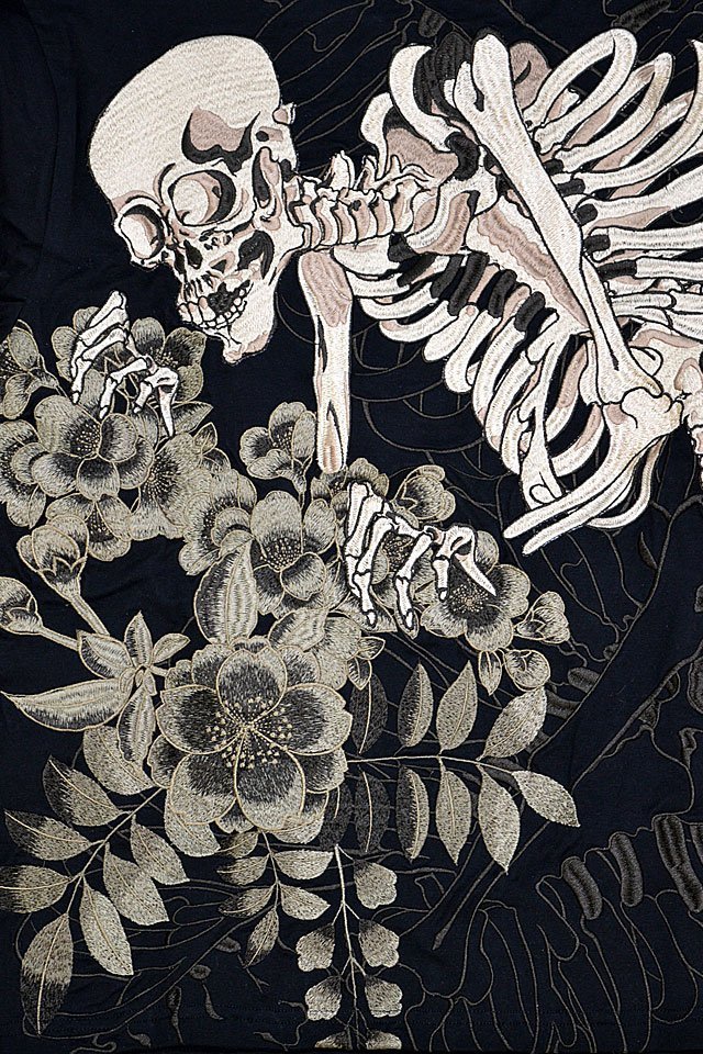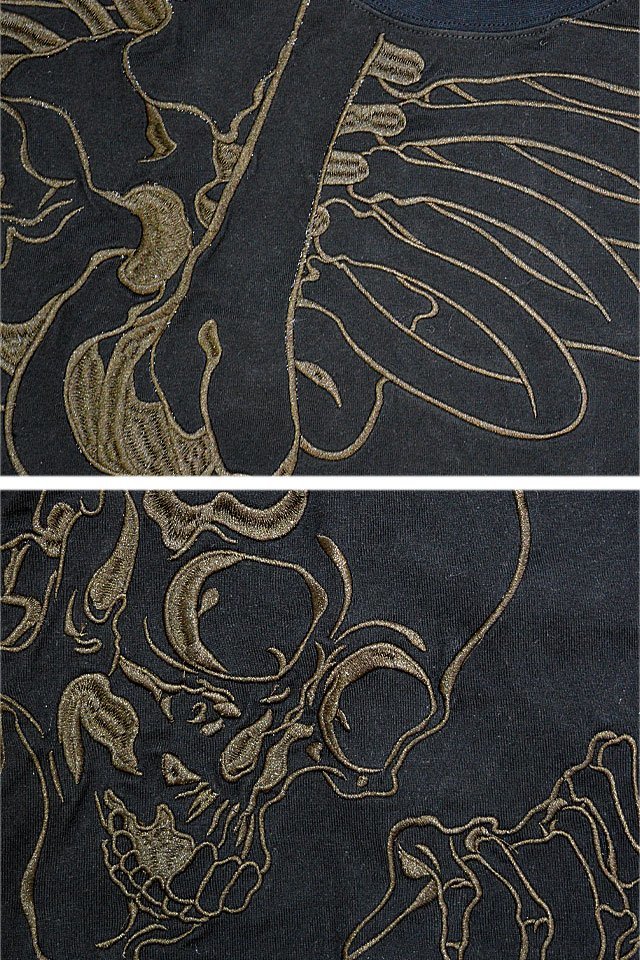 絡繰魂さんから「粋 がしゃどくろロングTシャツ(241026)」のご紹介です。 絡繰魂から渋いデザインの長袖Tシャツが登場しました。 背中にはおどろおどろしいがしゃどくろの姿が描かれています。 フロントや背景にはアウトラインのみで骨を表現。 バック左裾には、ブランドロゴを印風に刺繍しました。 ボディーには綿100%の、刺繍に負けないコシのあるTシャツ生地を採用。 それぞれ統一感のあるカラーリングが魅力的です。 | |||||||||||||||||||||||||