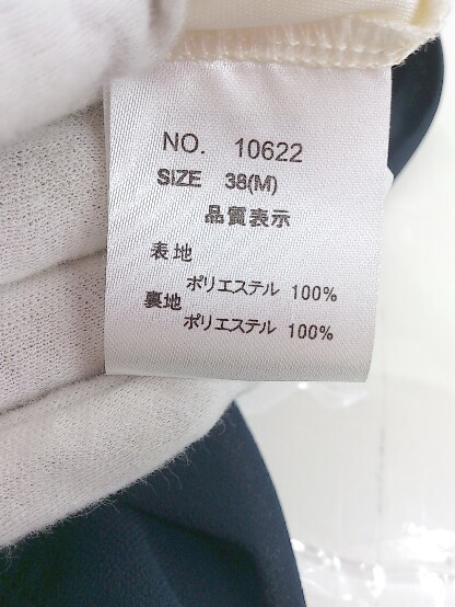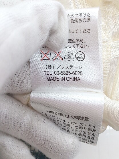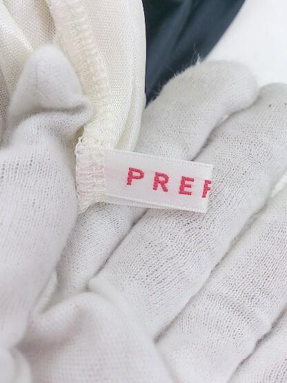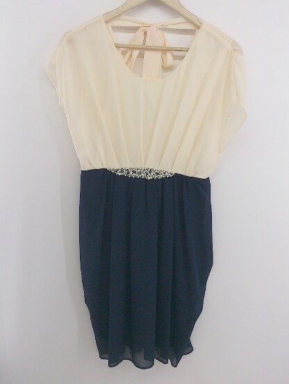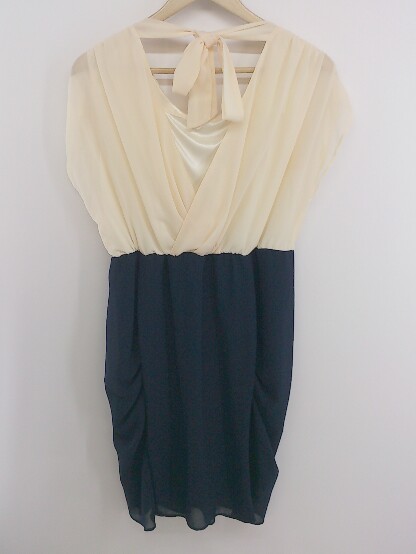 ◇ PREFERIR 装飾パール カシュクール フレンチスリーブ 膝丈 ドレス ワンピース サイズ M ベージュ ネイビー レディース E