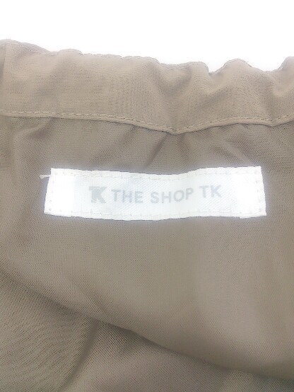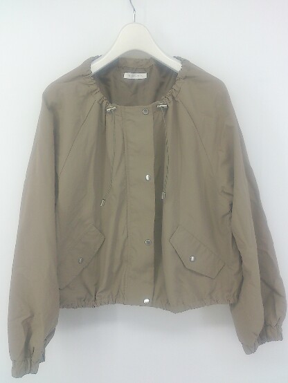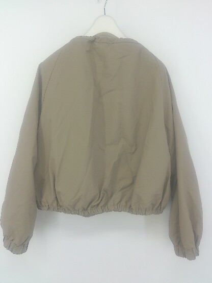 ◇ THE SHOP TK ノーカラー ジップアップ 長袖 ブルゾン ジャンパー サイズM ブラウン系 ベージュ系 レディース E