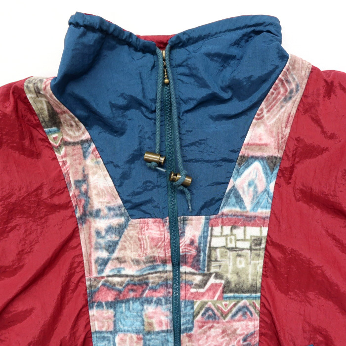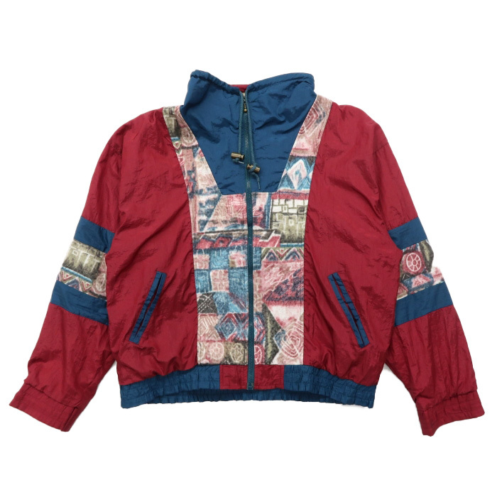 古着 総柄 ナイロンジャケット クレイジーパターン フルジップ マルチカラー サイズ表記:M gd35863