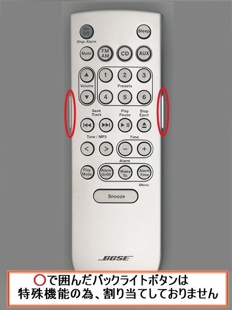 【商品名】 BOSE Premium Backlit Remote 代替リモコン 【対応機種】 Wave Music System 上記機種以外については、質問欄よりメーカーと型番をご連絡頂ければ、対応品のご案内をしております。 【商品について】 右側の代替リモコンが出品物になります。左側のリモコンは見本画像です。 タイトル機種のリモコン信号を入力した設定不要ですぐ使える純正品と同等の代替リモコンです。 商品に不具合があった場合は代替品交換かご返金にて対応させて頂きます。 【付属品について】 防水リモコンカバーをお付けします。 ボタン機能を印刷した薄型フィルムはリモコンに貼付け済みです。 乾電池は付属しません。別途ご用意下さい。(単4乾電池×2本) 【発送について】送料無料 迅速発送を心掛けております。土日祝日はお時間を頂く場合ございます。 ポスト投函配達となり、日時指定は出来ません。 | ||