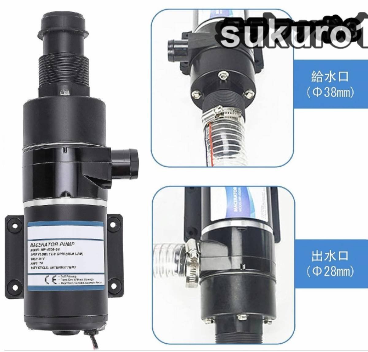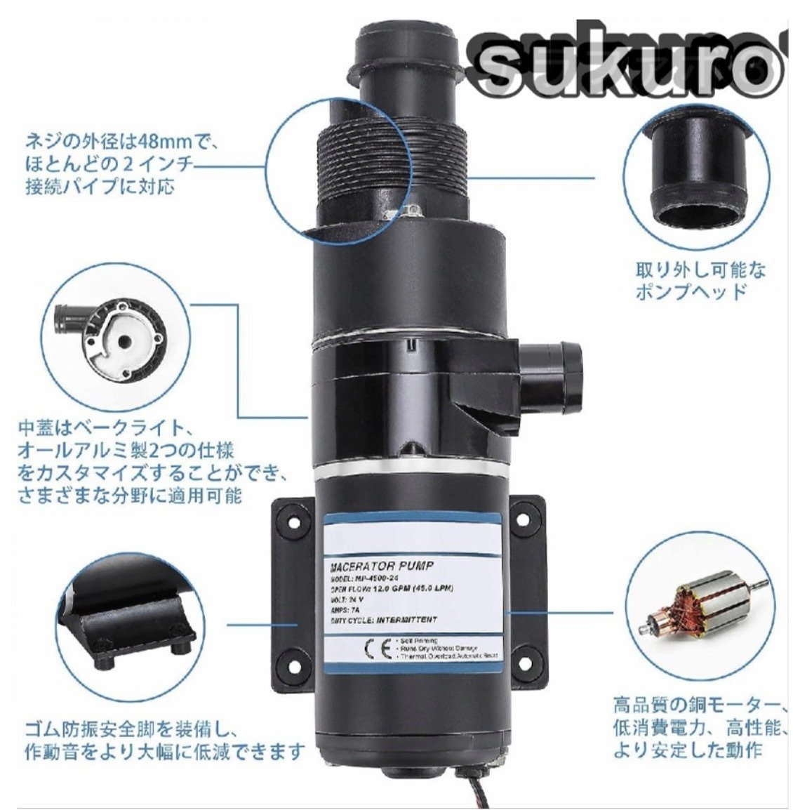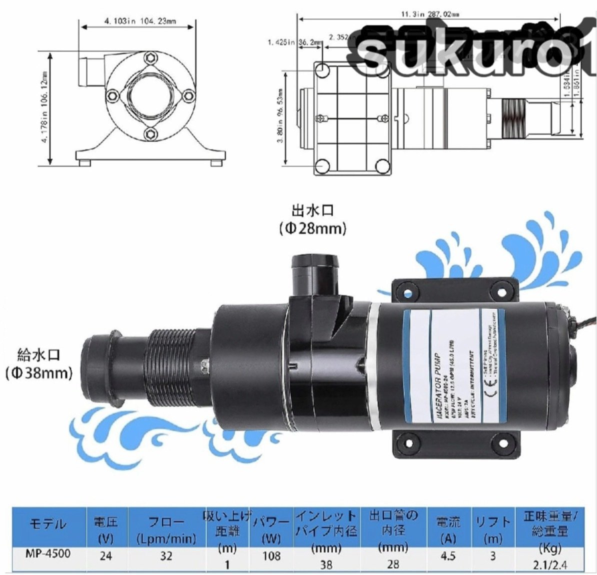 汚水ポンプ 電動下水ポンプ ゴミ砕く ゴミ処理破砕 不純物ポンプ 自吸式 ポンプ大流量 ディスポーザー内蔵 ダブルブレード DC 32L/min(24V)