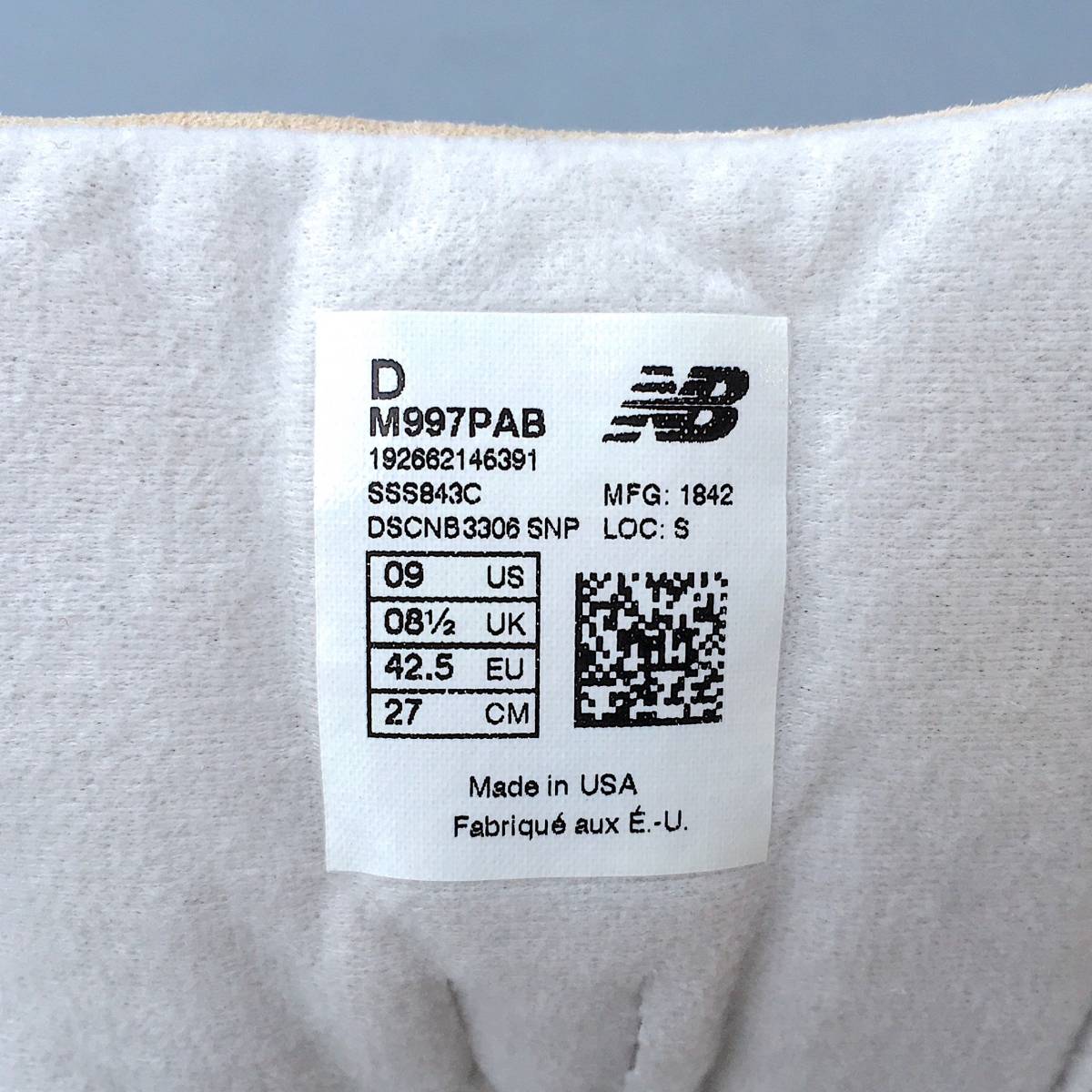 国内正規品 USA製 NEW BALANCE M997PAB TAN US9D 27cm ライトベージュ×ホワイト 限定モデル 新品 スウェード アメリカ米国製
