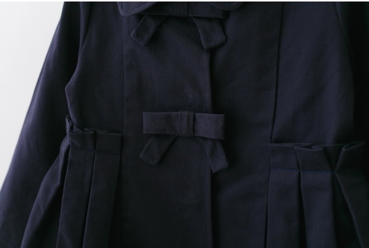 | ☆ 素材・・・ コットン100% ☆ 裏生地・・・ポリエステル100% ☆ カラー・・・紺色 ☆ サイズ・・・約130cm (着丈:57㎝ 肩幅:28㎝ 胸囲:72㎝ 袖丈:43㎝) | |||