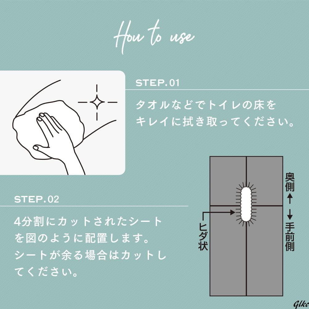 便器まわりはヒダ状になっているので、貼りつけ場所が分かりやすいです。