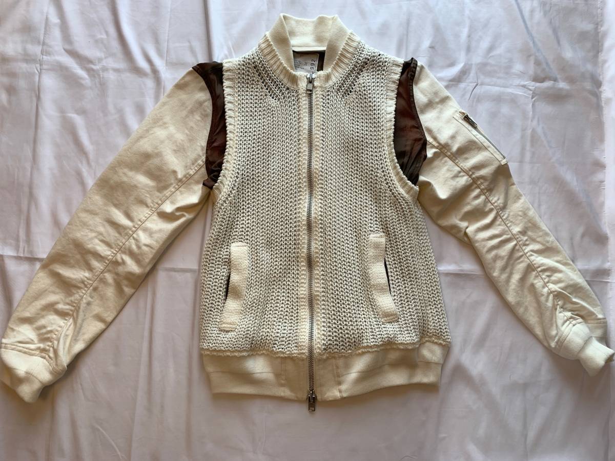2016 sacai サカイ カーディガン ジップ ZIP 白 ニット ブルゾン アウター 再構築 人気 希少 メンズ サイズ1