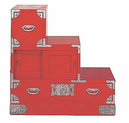 民芸箪笥 和たんす 和風 宝箪笥 84cm彩り階段箪笥 朱塗 筑後民芸 ●レッド系