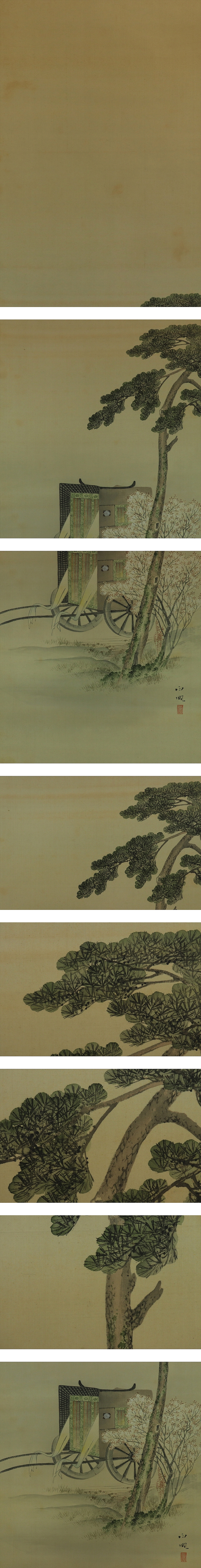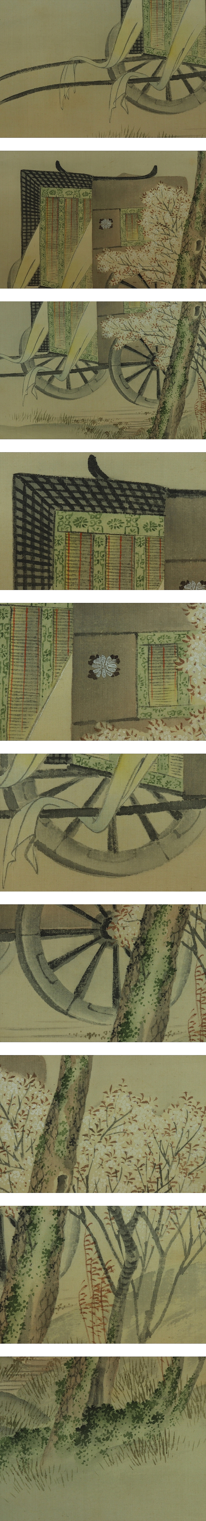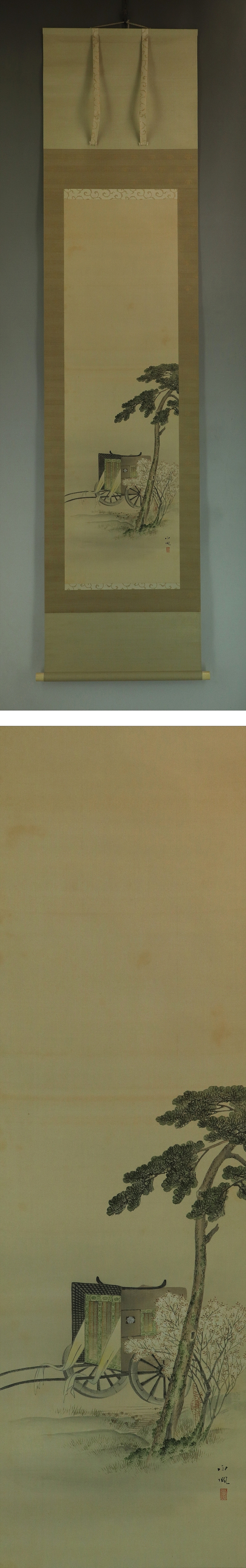 | №2301127【真作】武部白鳳【春景御所車図】◆絹本◆共箱◆掛軸 | |